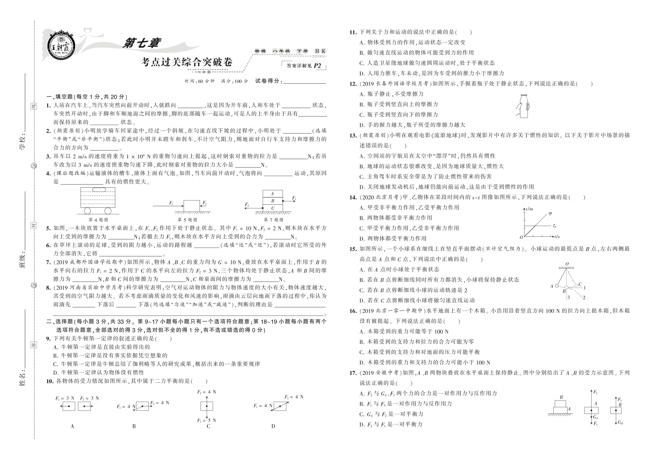 2020-2021学年八年级物理沪科版 第七章 考点过关综合突破卷