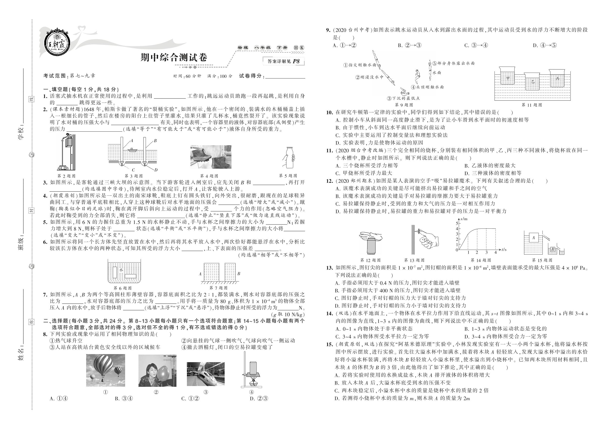 2020-2021学年第二学期八年级物理沪科版 期中综合测试卷