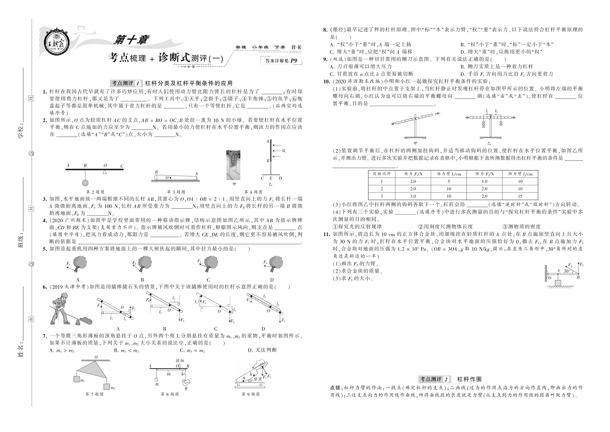2020-2021学年八年级物理沪科版 第十章 考点梳理 + 诊断式测评(一)