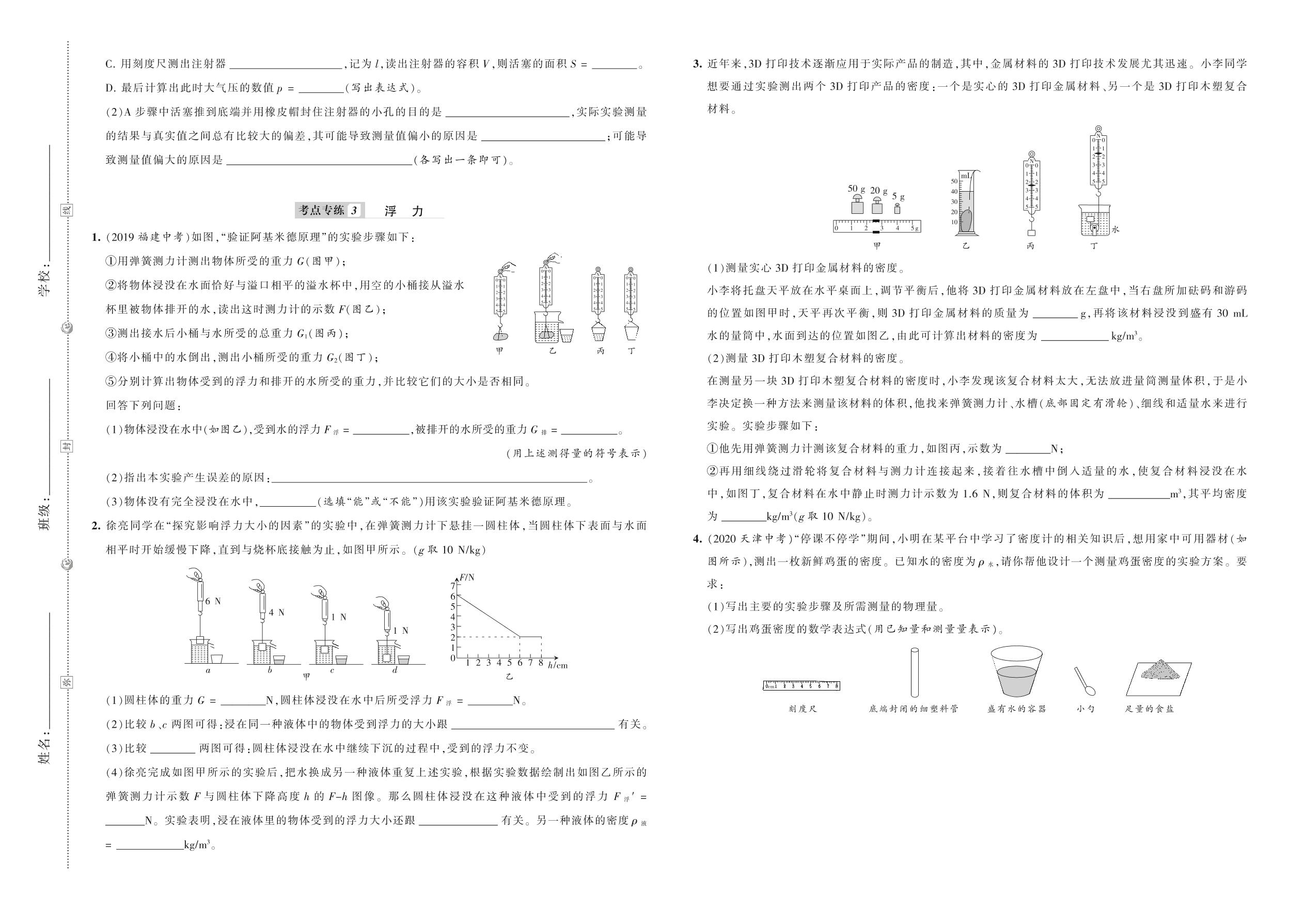 八年级物理沪科版下册专项卷