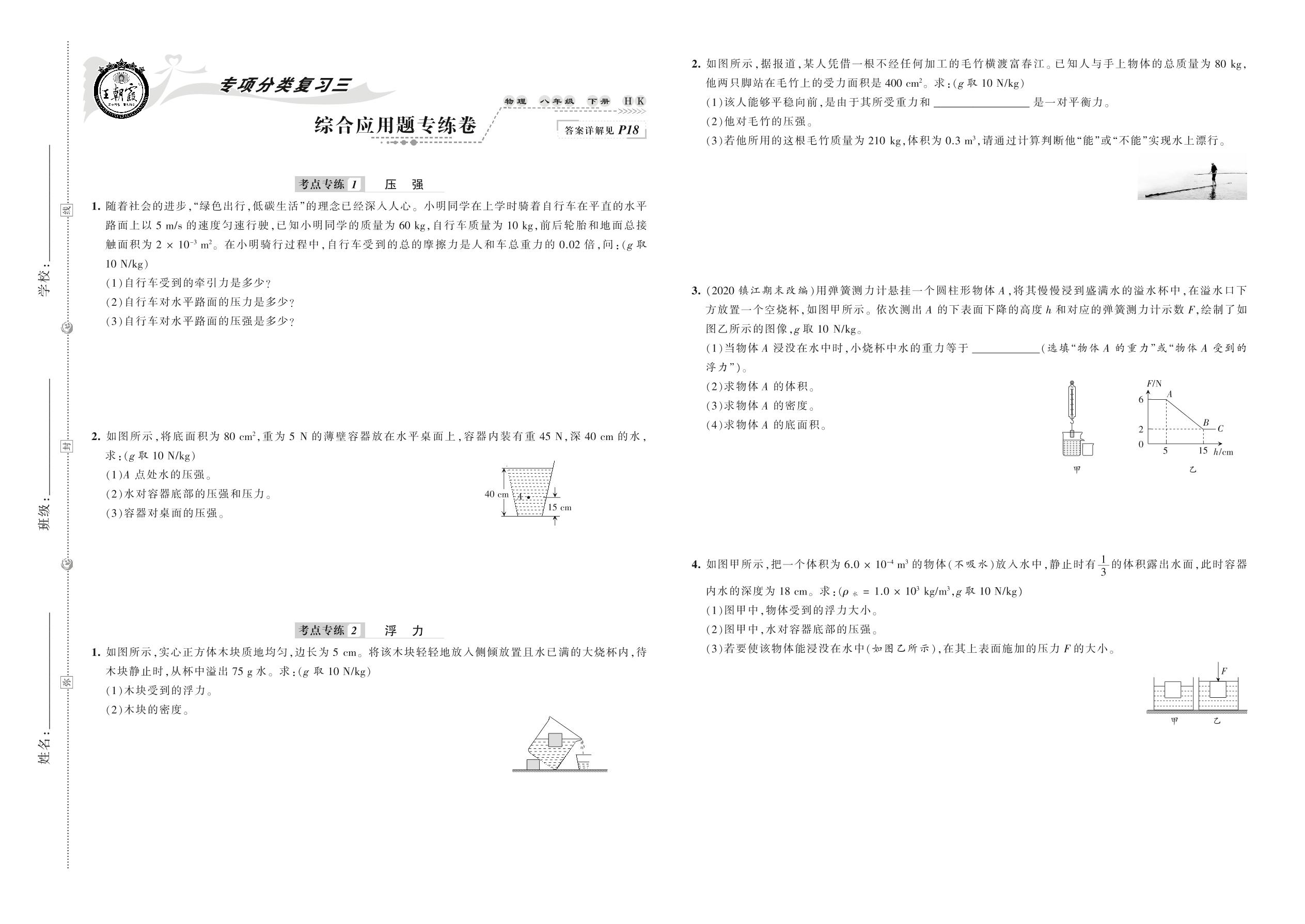 八年级物理沪科版下册专项卷