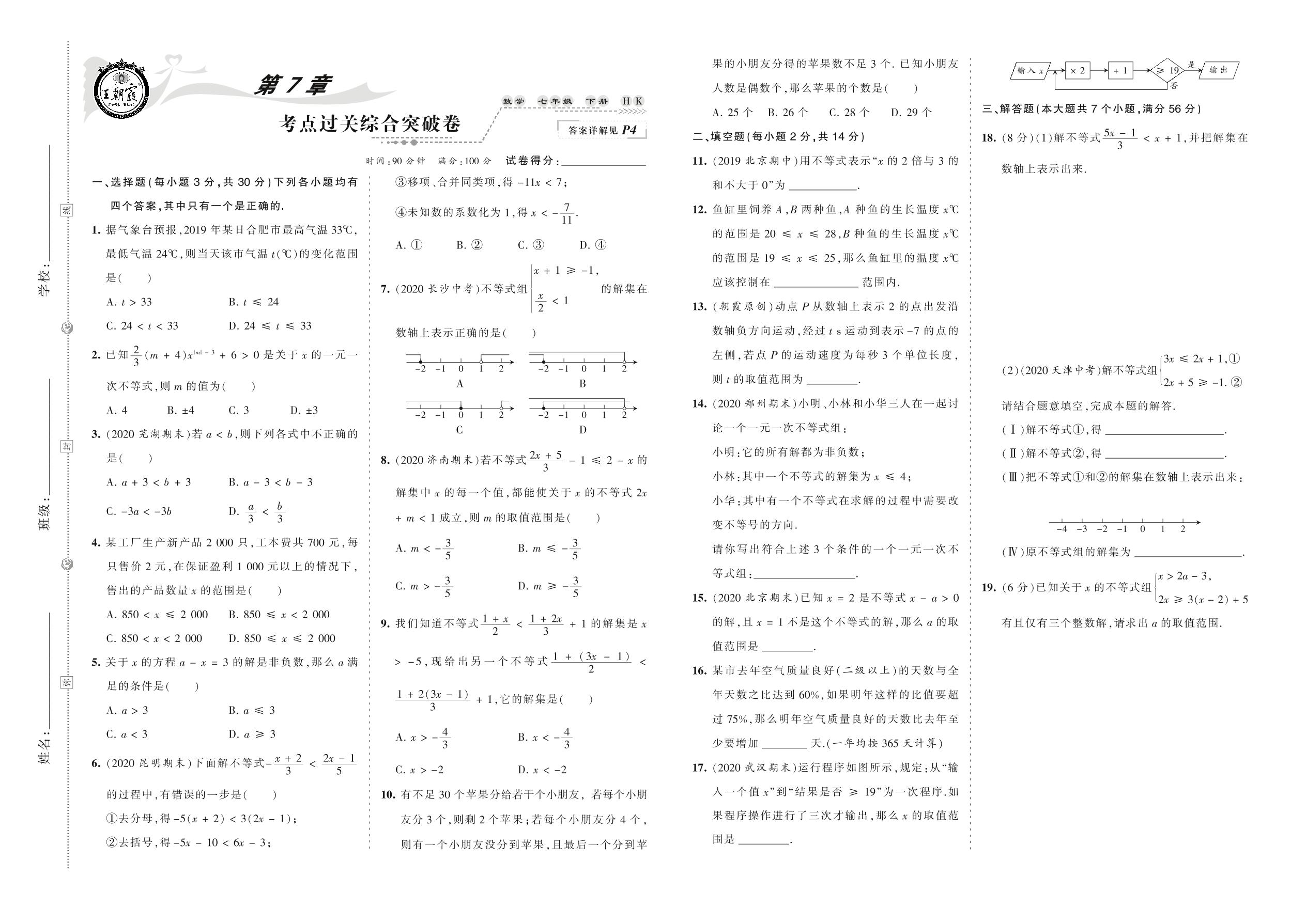 2021下册七年级数学沪科版 第7章 考点过关综合突破卷