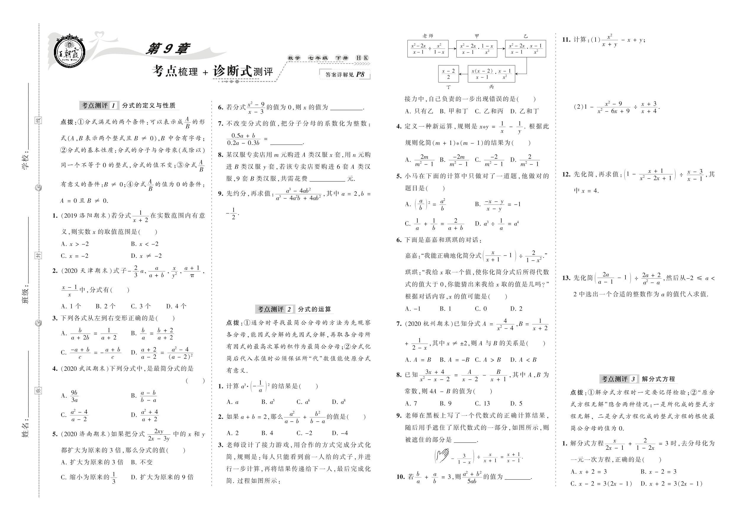 2021下册七年级数学沪科版 第9章 考点梳理 + 诊断式测评