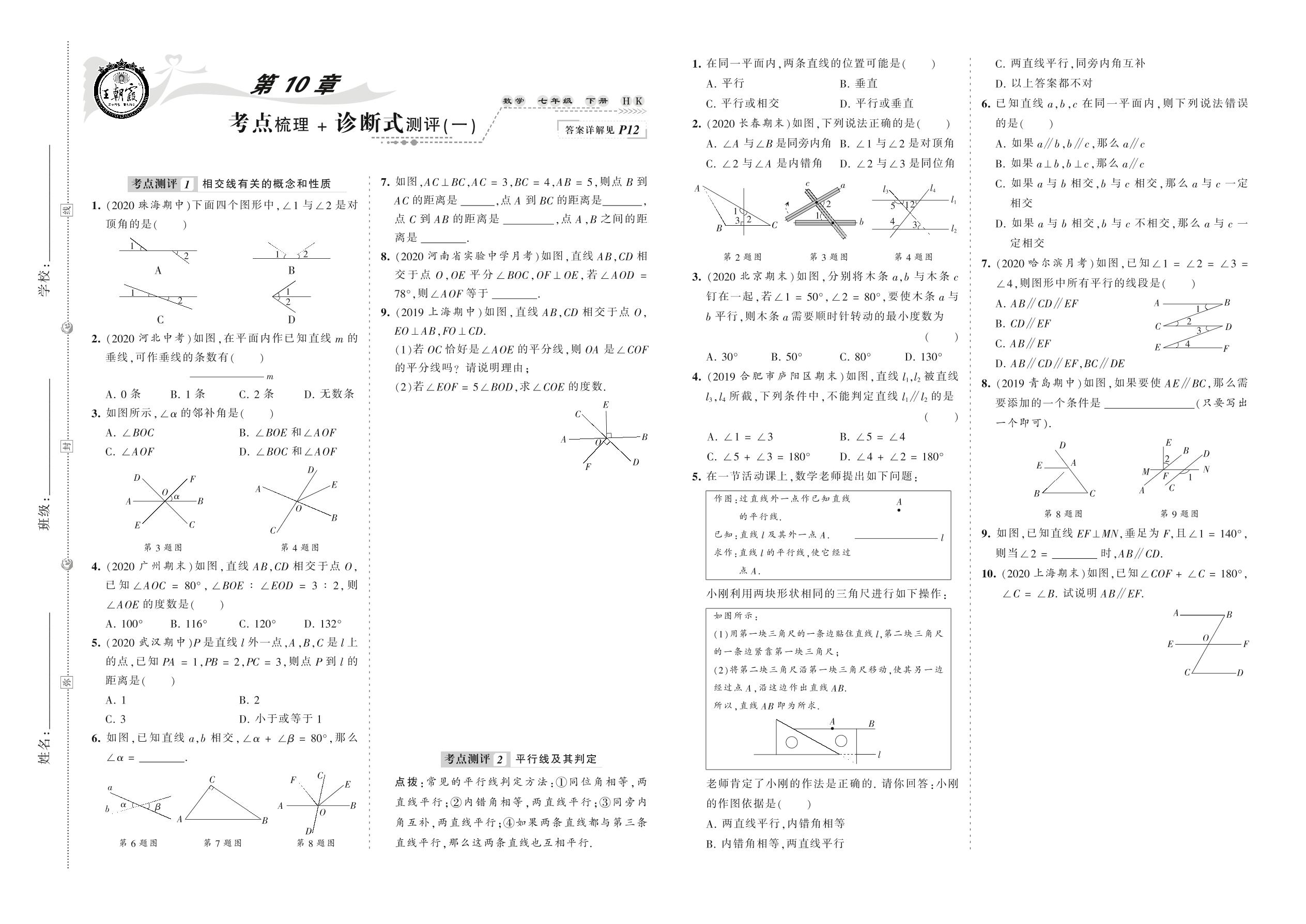 2021下册七年级数学沪科版 第10章 考点梳理 + 诊断式测评(一)