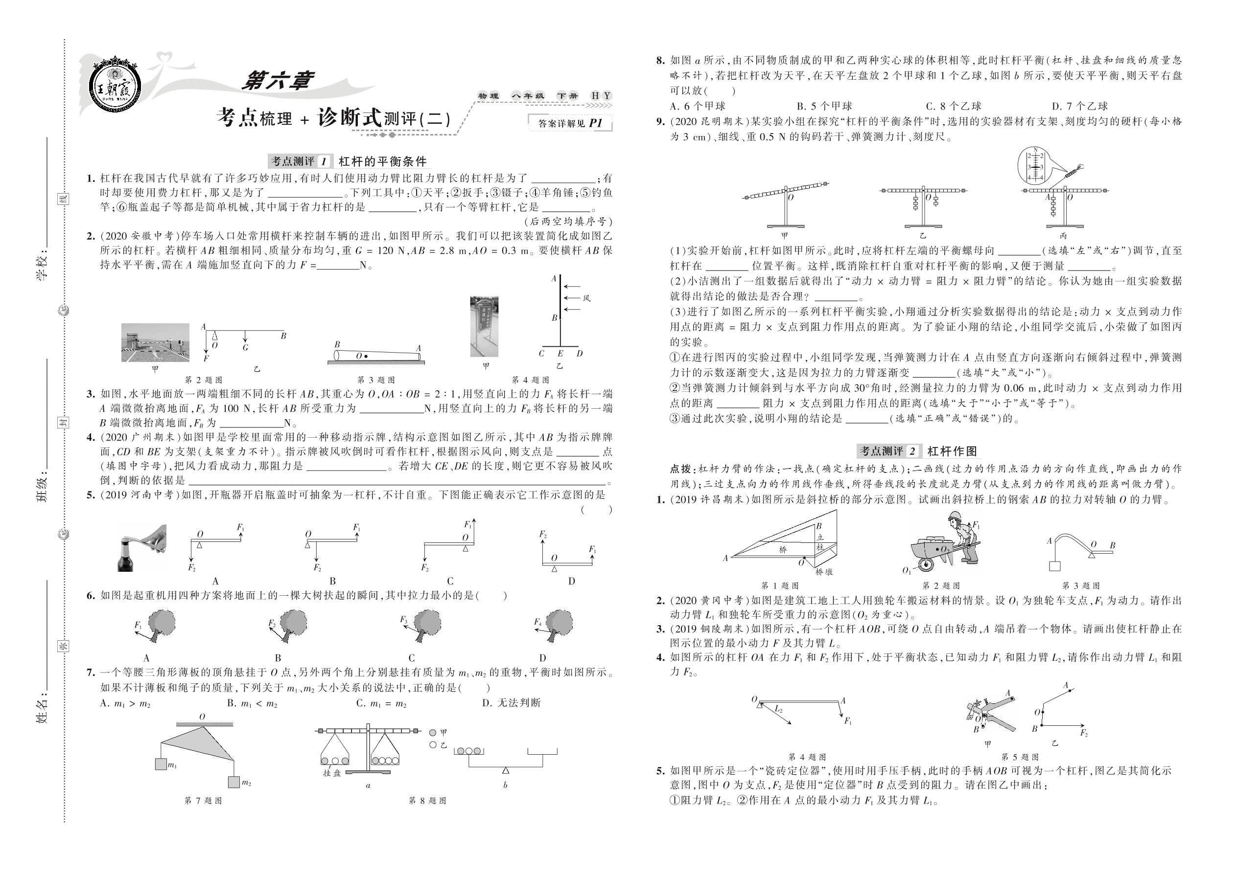 2021下册八年级物理沪粤版 第六章 考点梳理 + 诊断式测评(二)