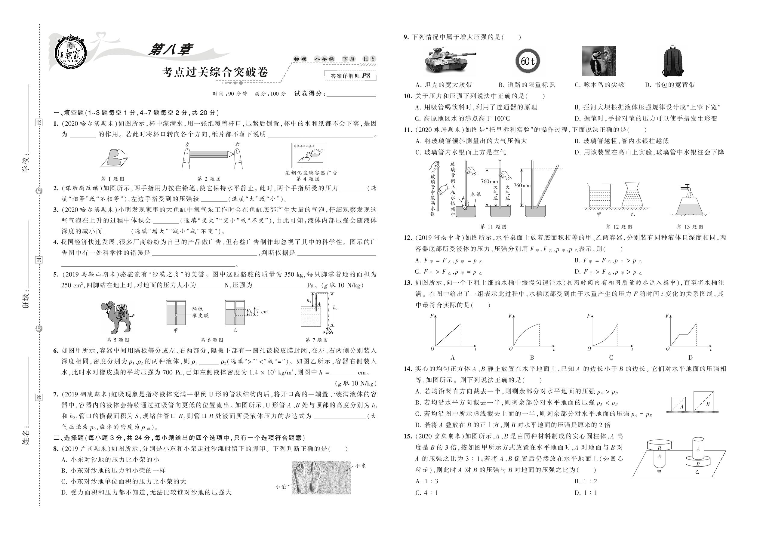 2021下册八年级物理沪粤版 第八章 考点过关综合突破卷