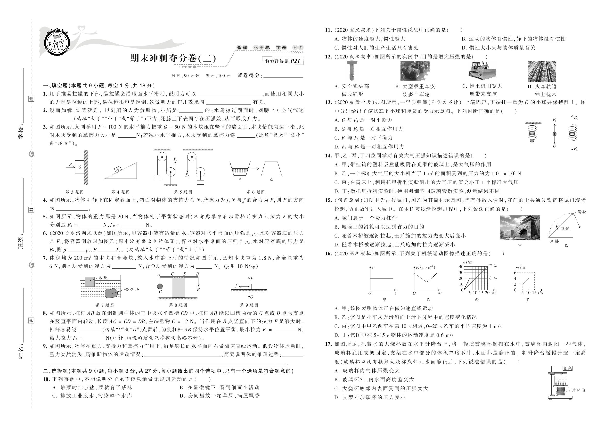 2021下册八年级物理沪粤版 期末冲刺夺分卷(二)