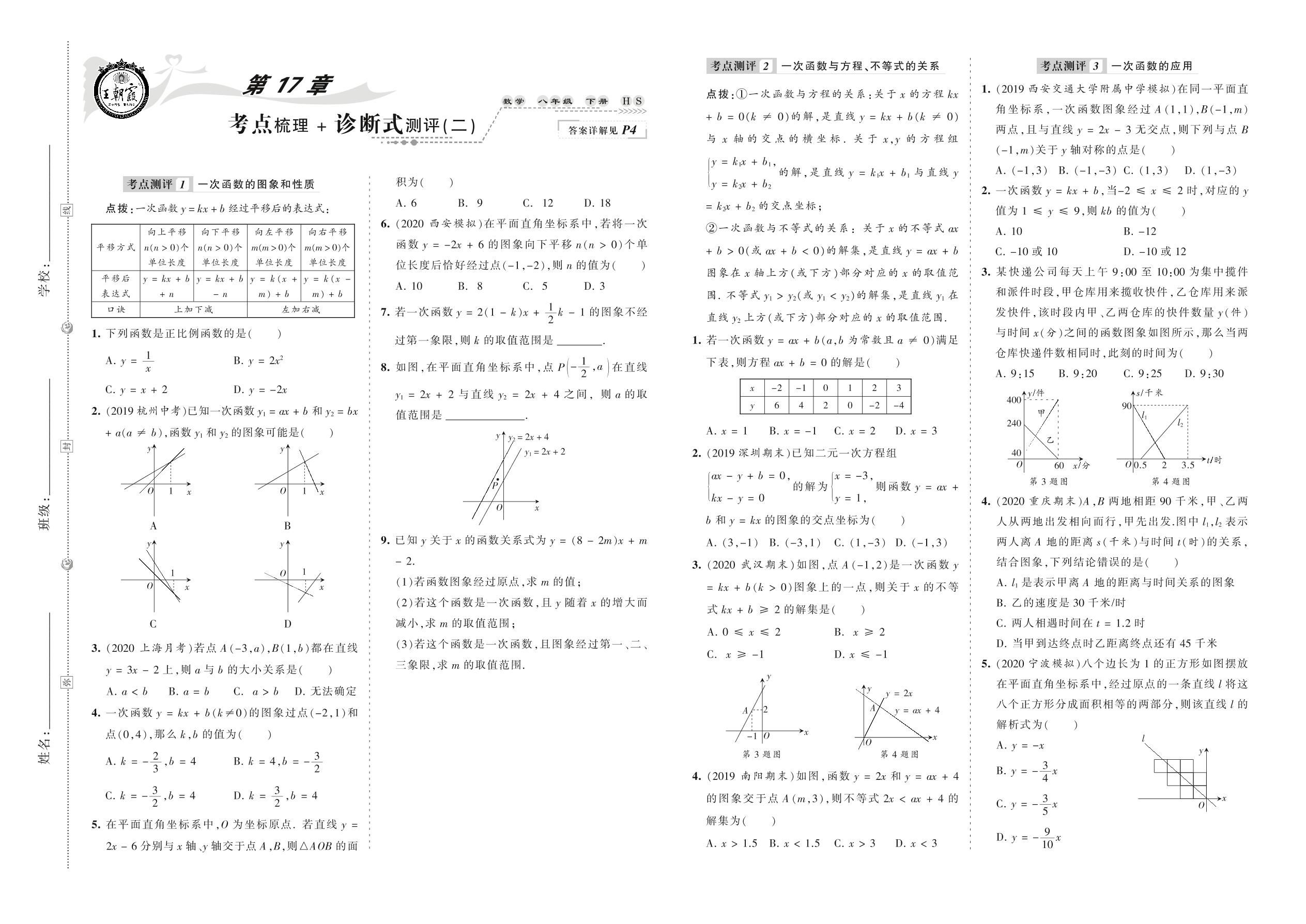 2021下册八年级数学华师版 第17章 考点梳理 + 诊断式测评(二)