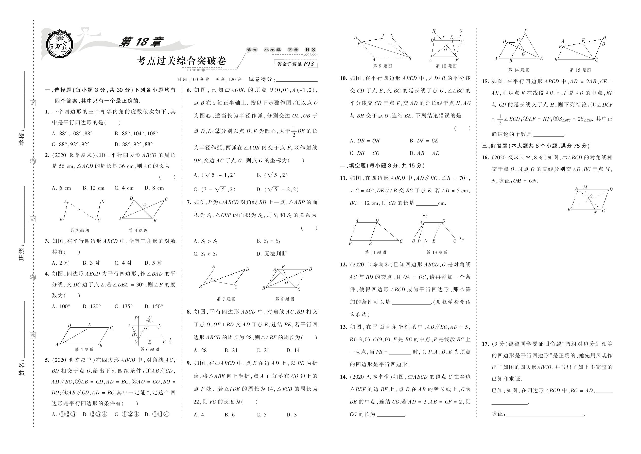 2021下册八年级数学华师版 第18章 考点过关综合突破卷