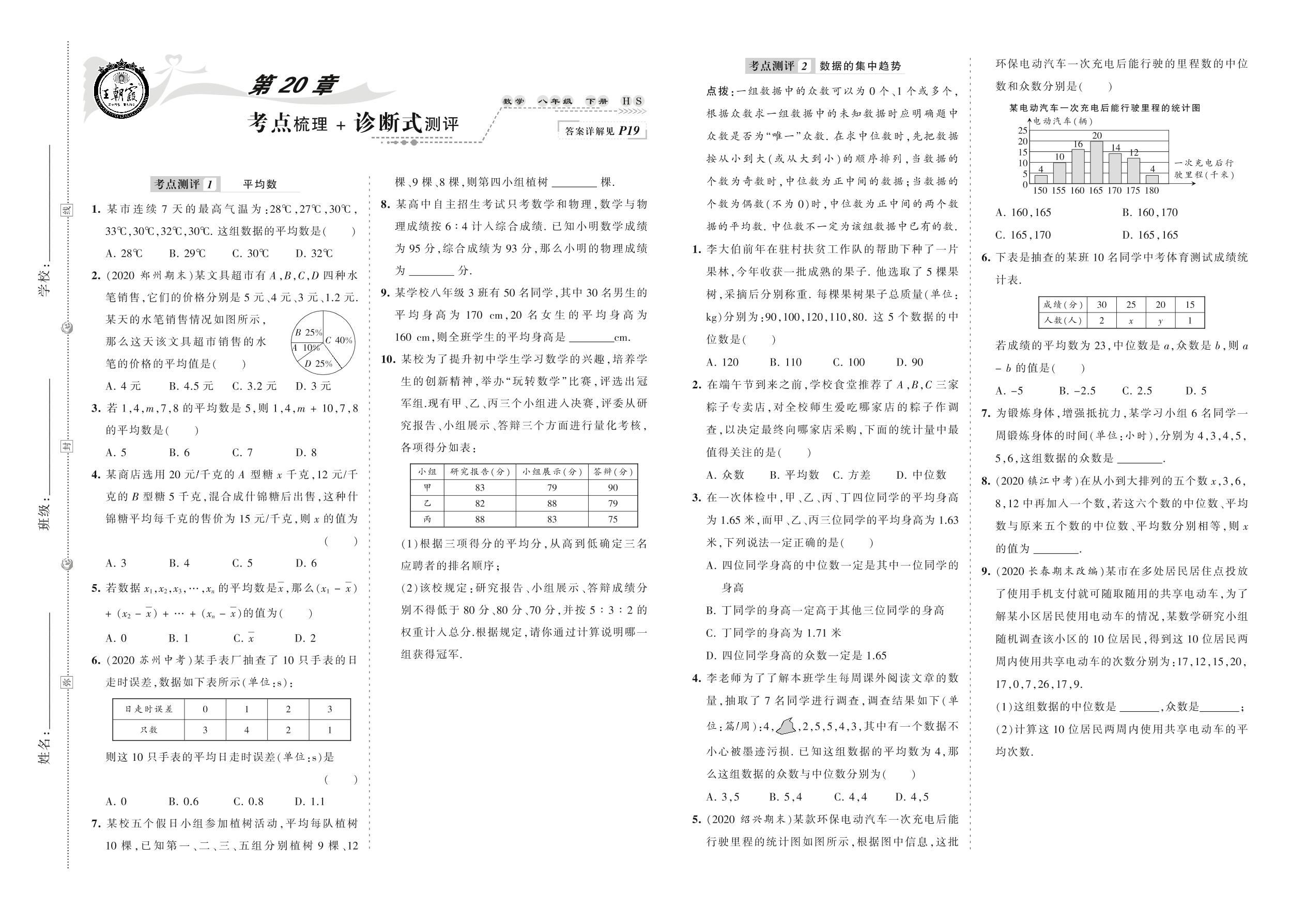 2021下册八年级数学华师版 第20章 考点梳理 + 诊断式测评