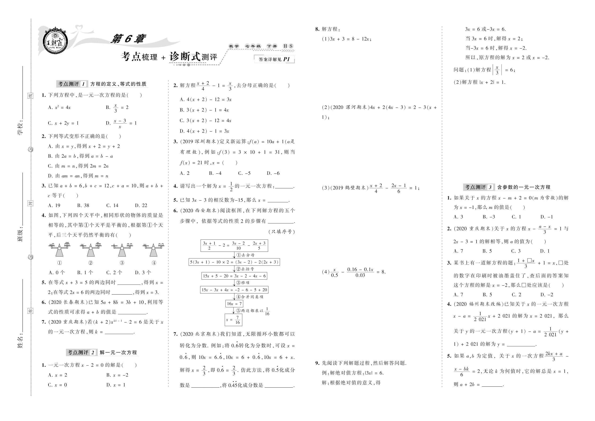 2021下册七年级数学华师版 第6章 考点梳理 + 诊断式测评