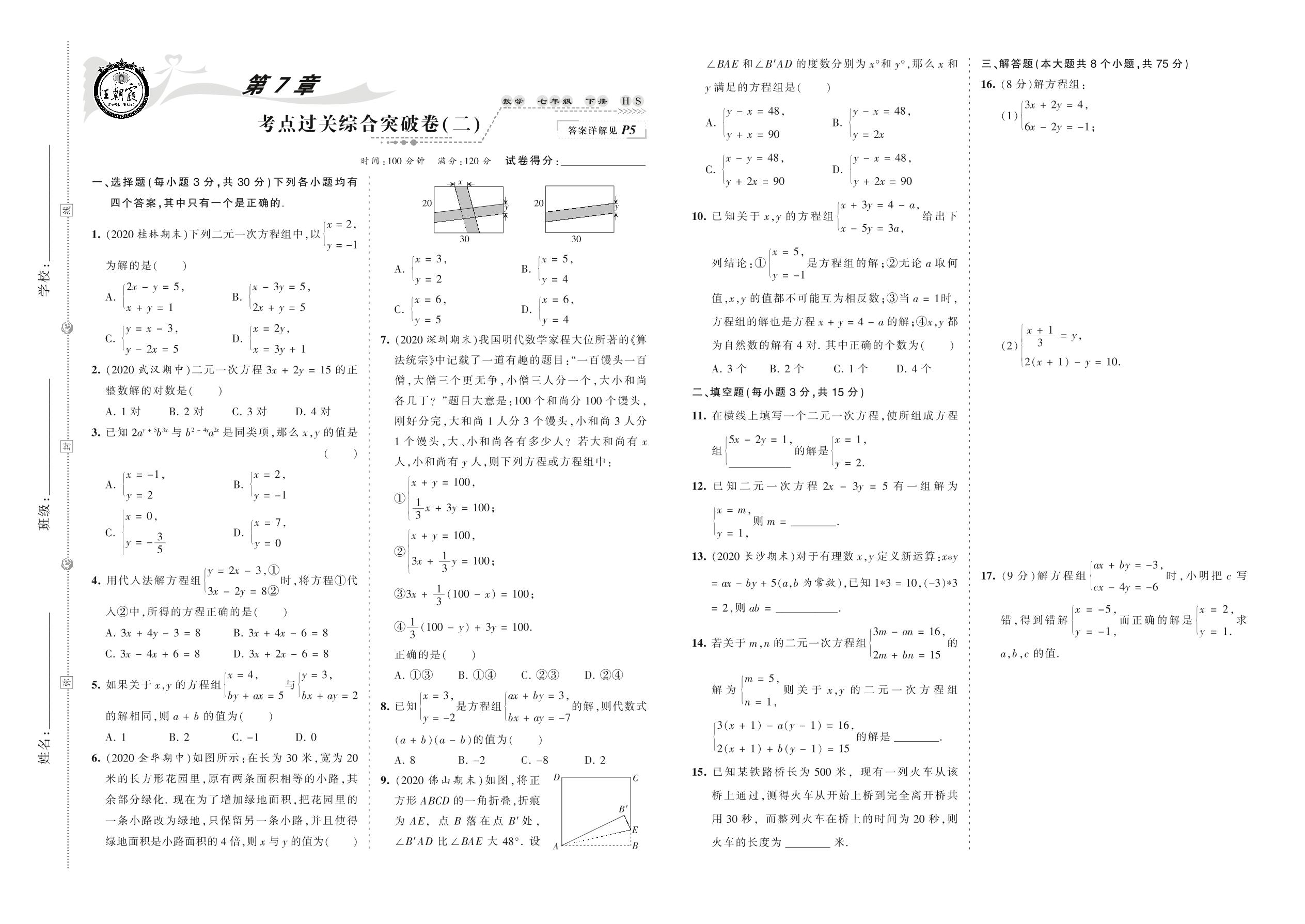 2021下册七年级数学华师版 第7章 考点过关综合突破卷(二)