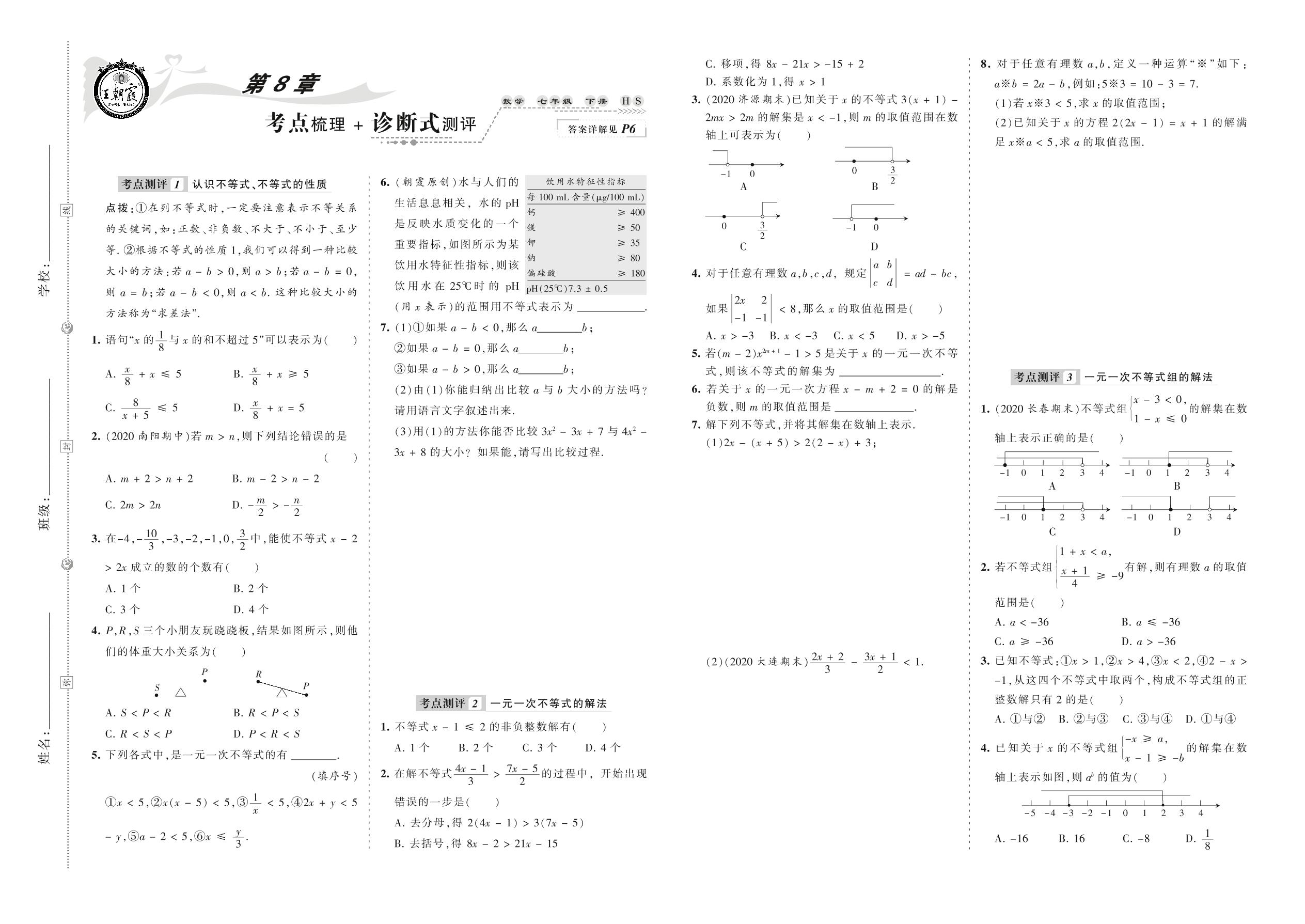 2021下册七年级数学华师版 第8章 考点梳理 + 诊断式测评