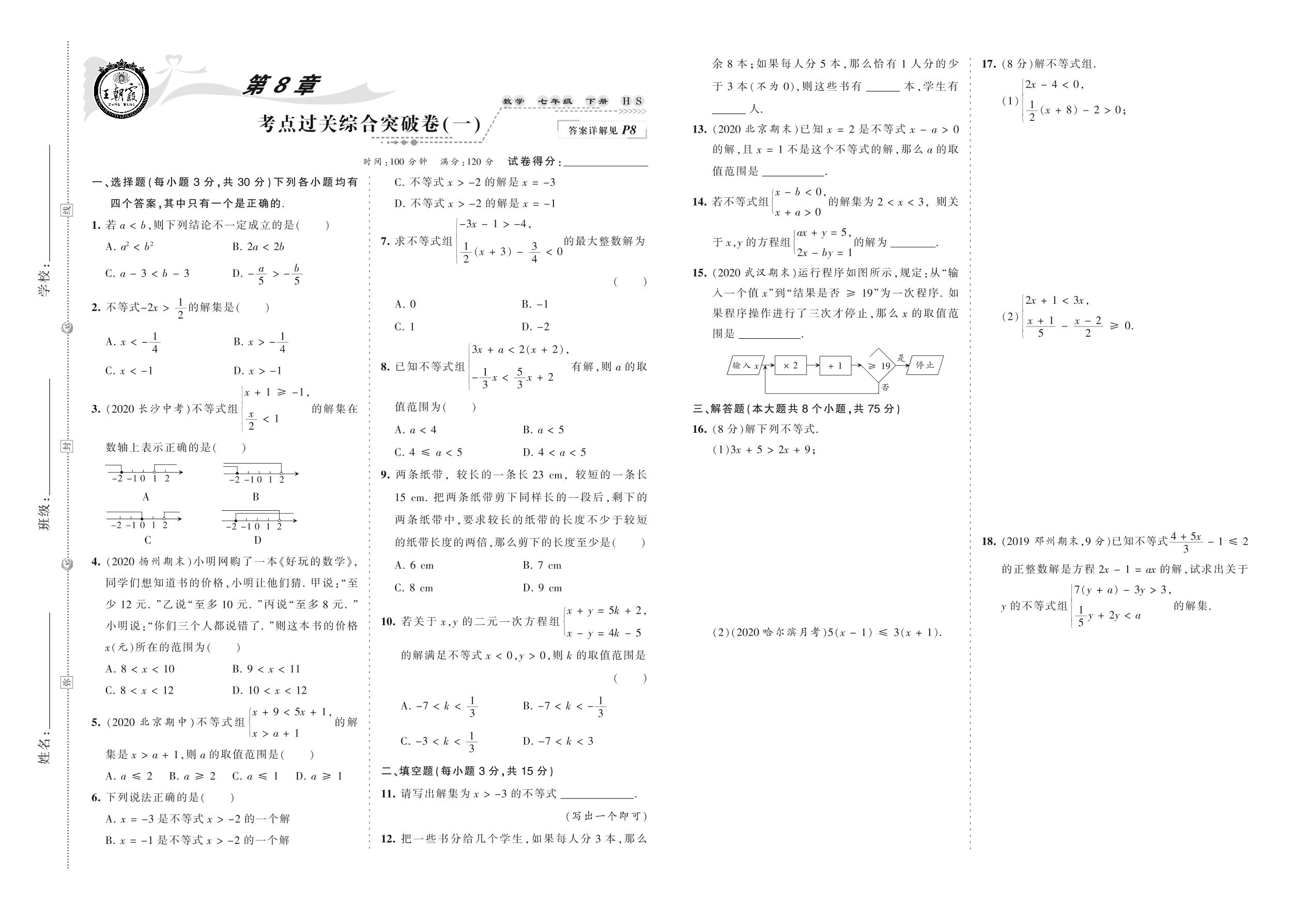 2021下册七年级数学华师版 第8章 考点过关综合突破卷(一)