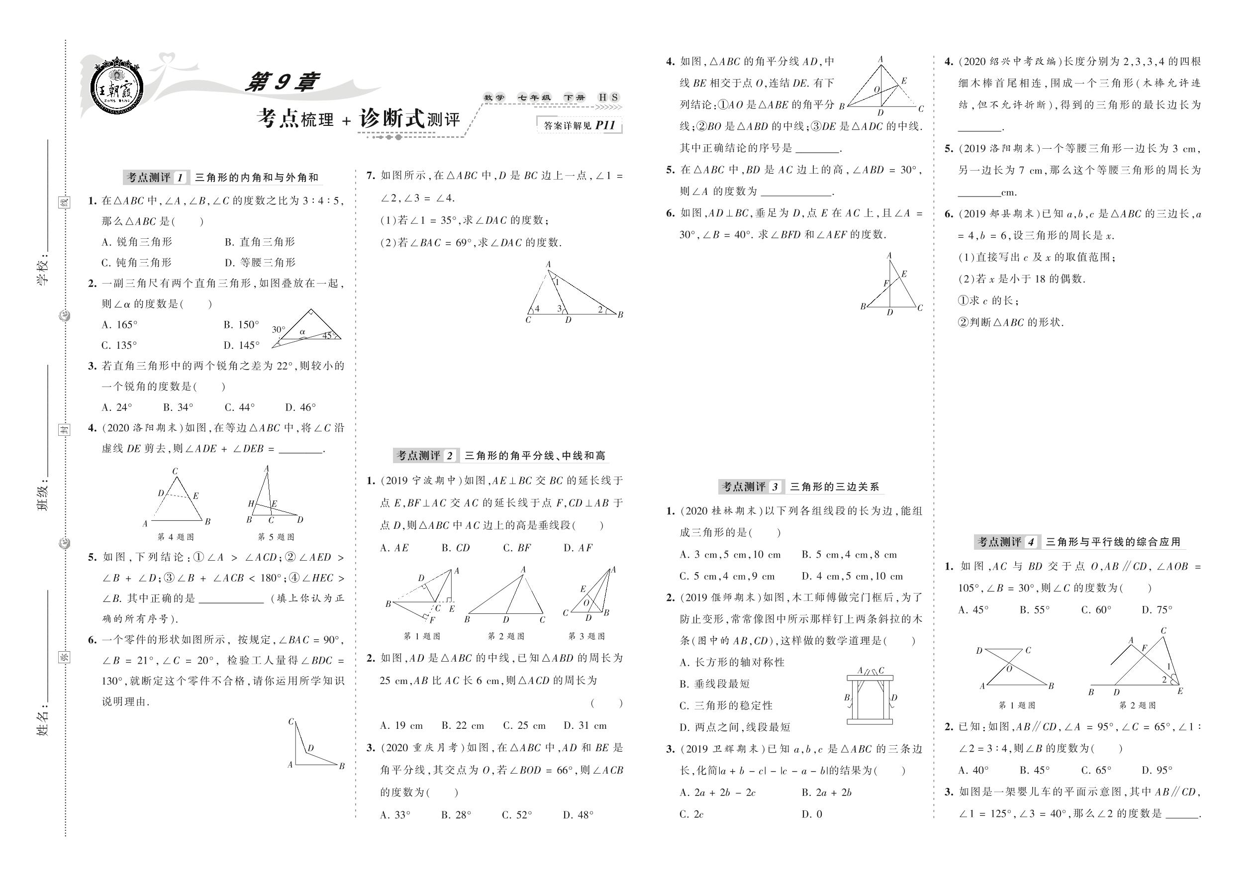 2021下册七年级数学华师版 第9章 考点梳理 + 诊断式测评