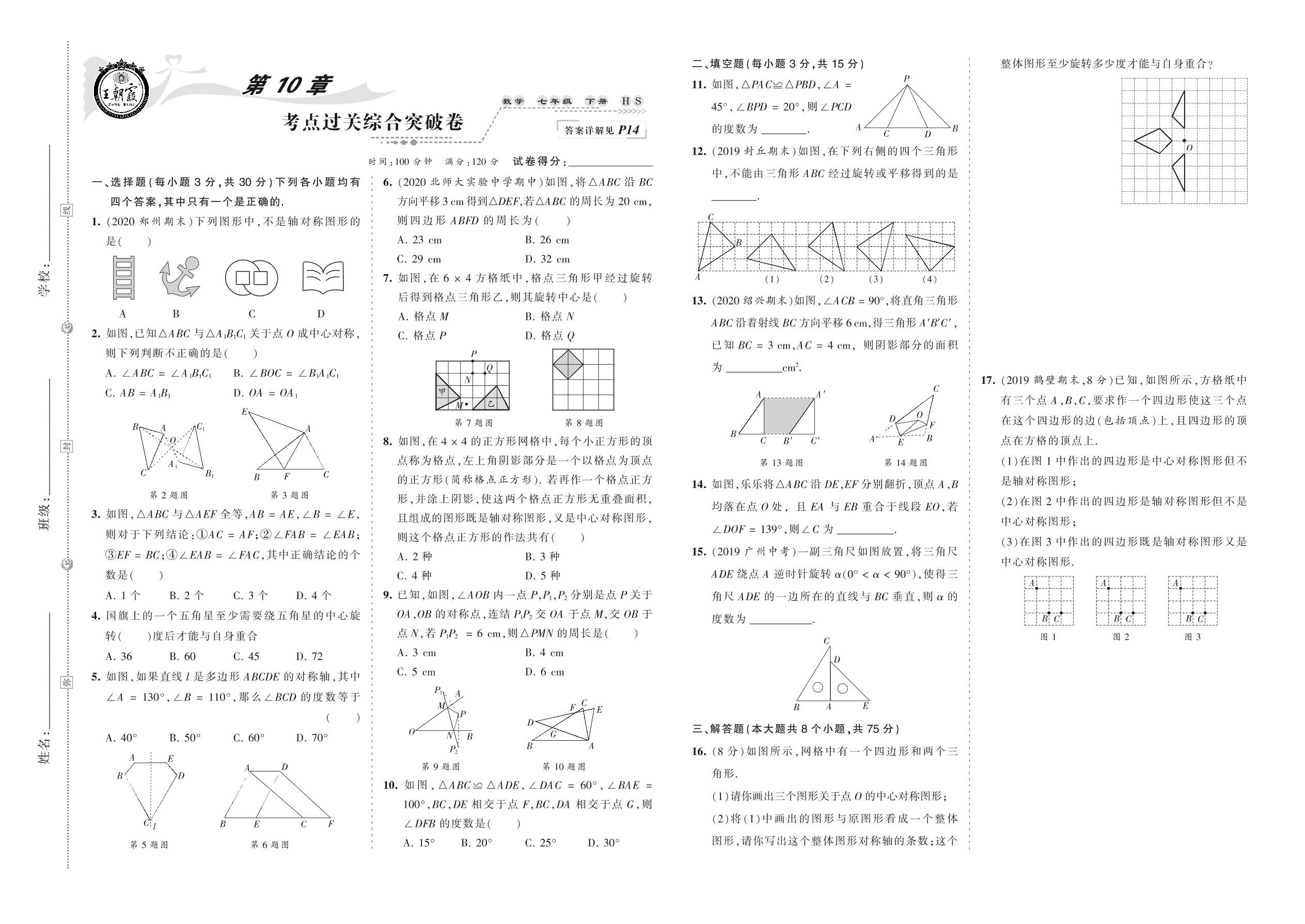 2021下册七年级数学华师版 第10章 考点过关综合突破卷