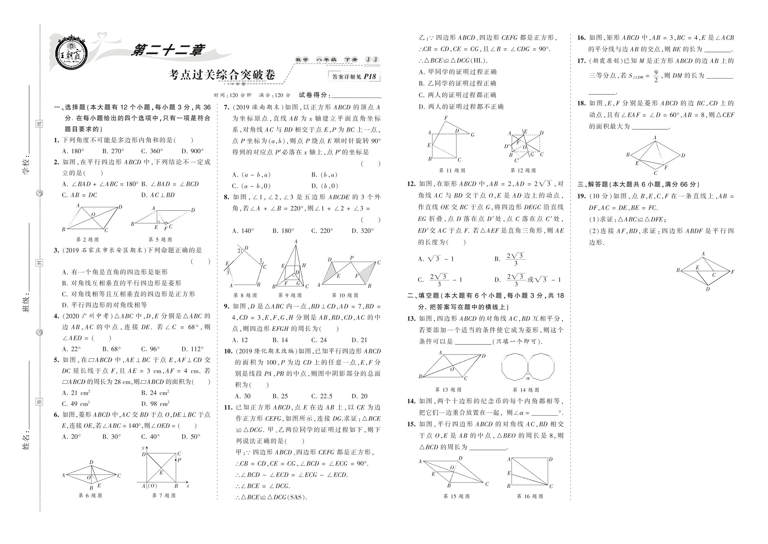2021下册八年级数学冀教版 第二十二章 考点过关综合突破卷