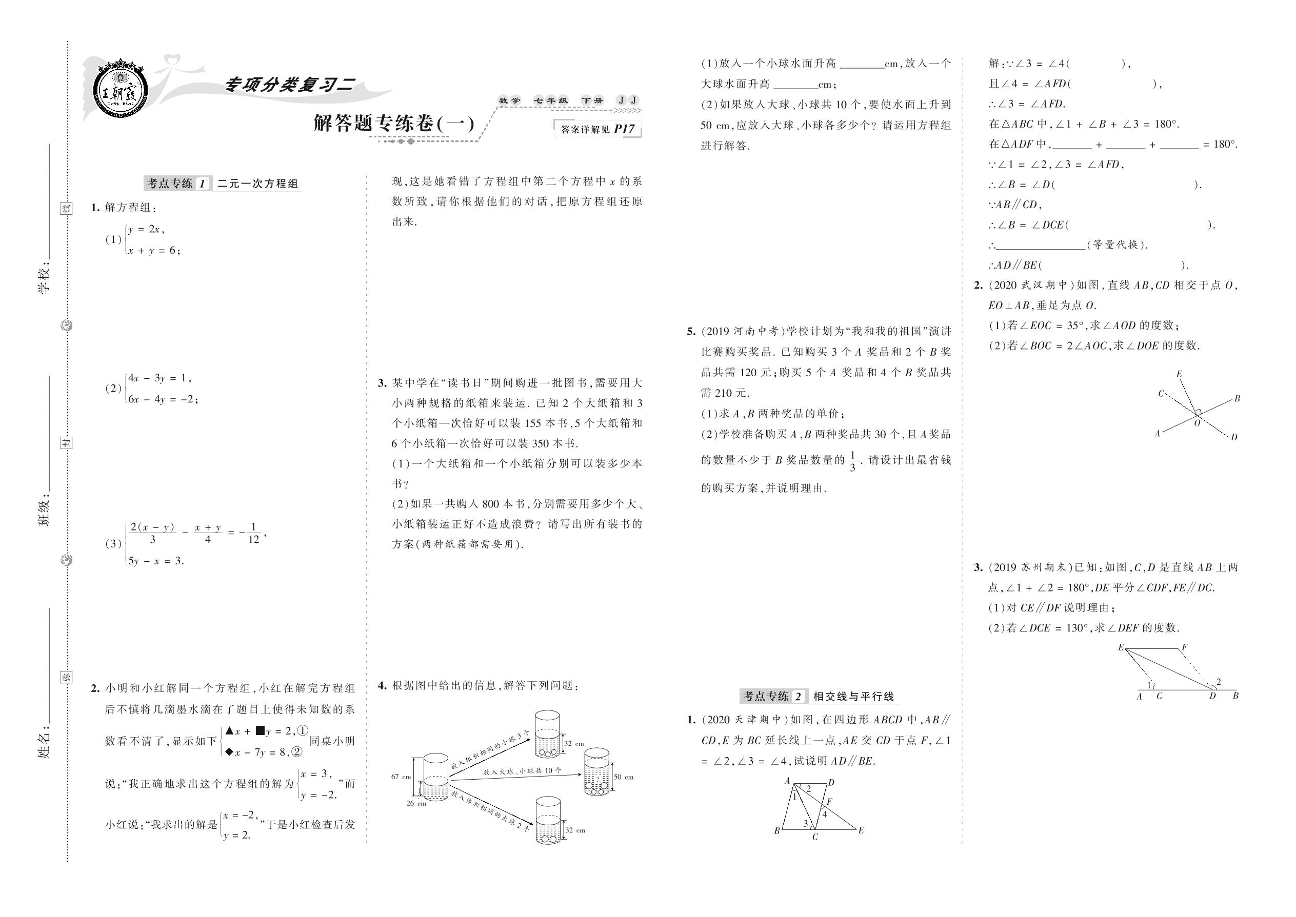 2021下册七年级数学冀教版 解答题专练卷(一)