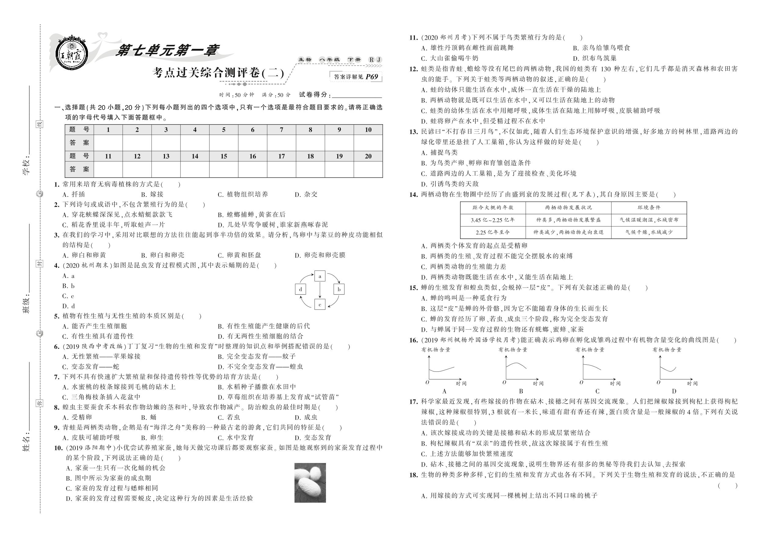 八年级生物人教版下册单元卷