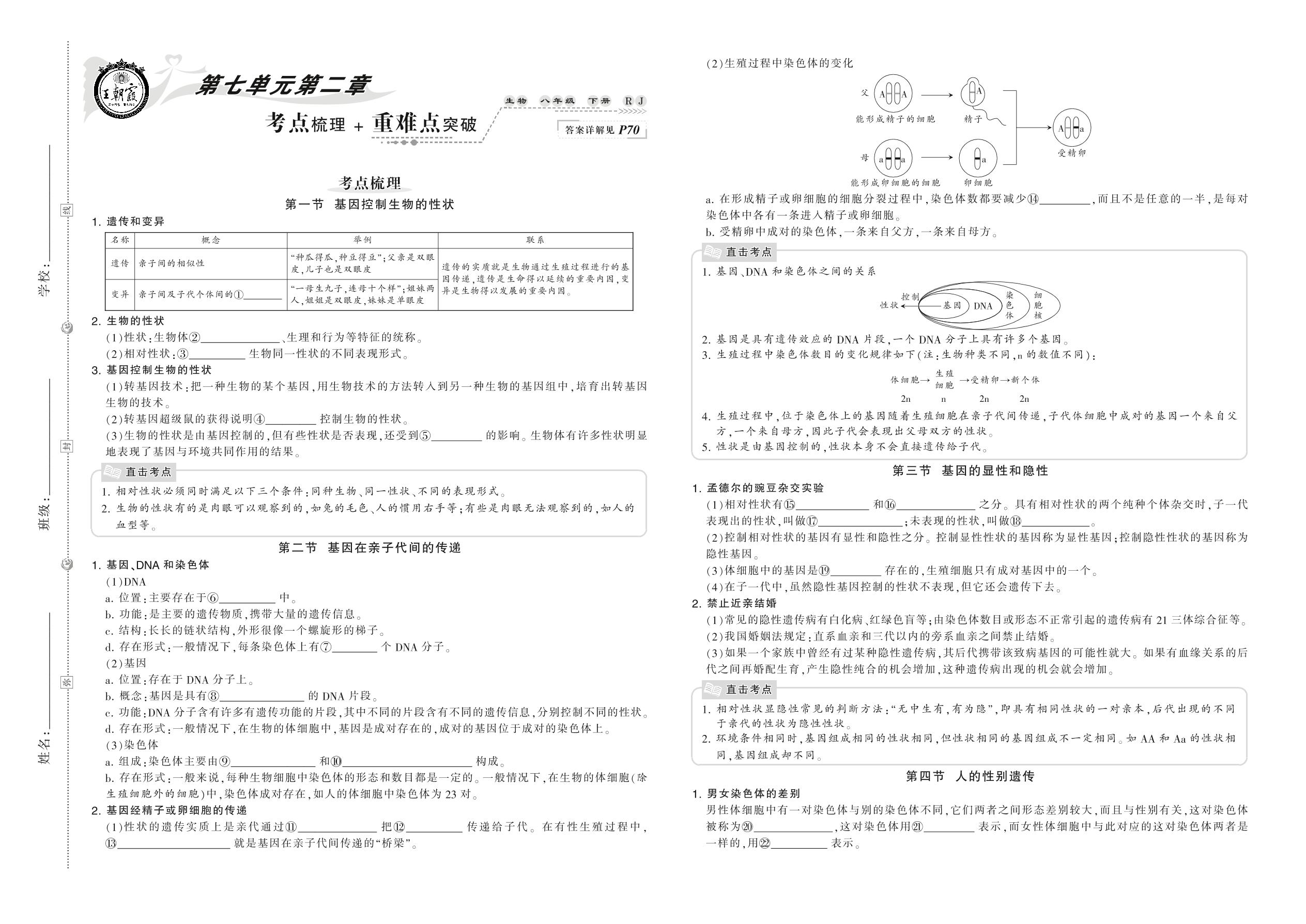 2021下册八年级生物人教版 第七单元第二章 考点梳理 + 重难点突破
