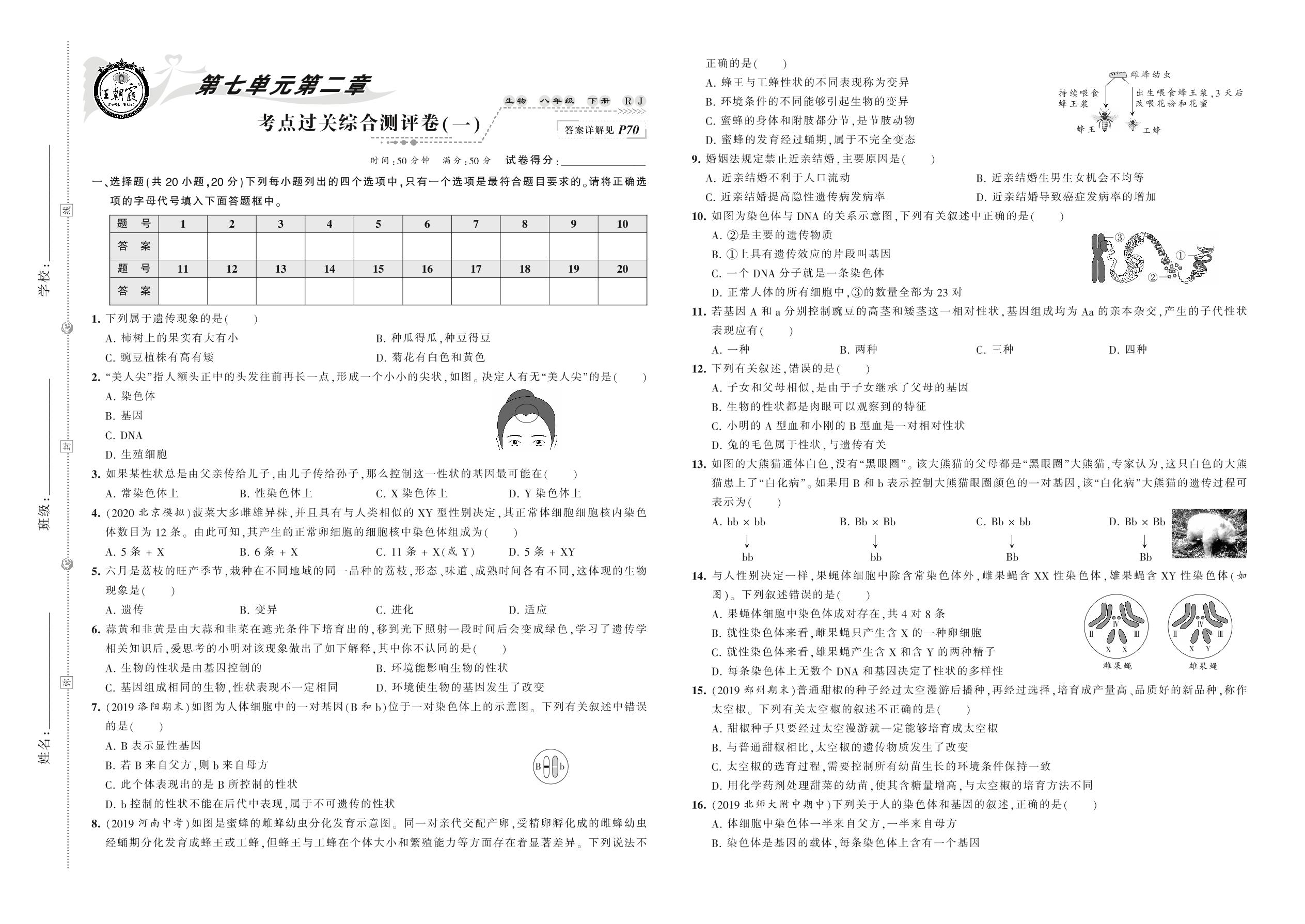 2021下册八年级生物人教版 第七单元第二章 考点过关综合测评卷(一)