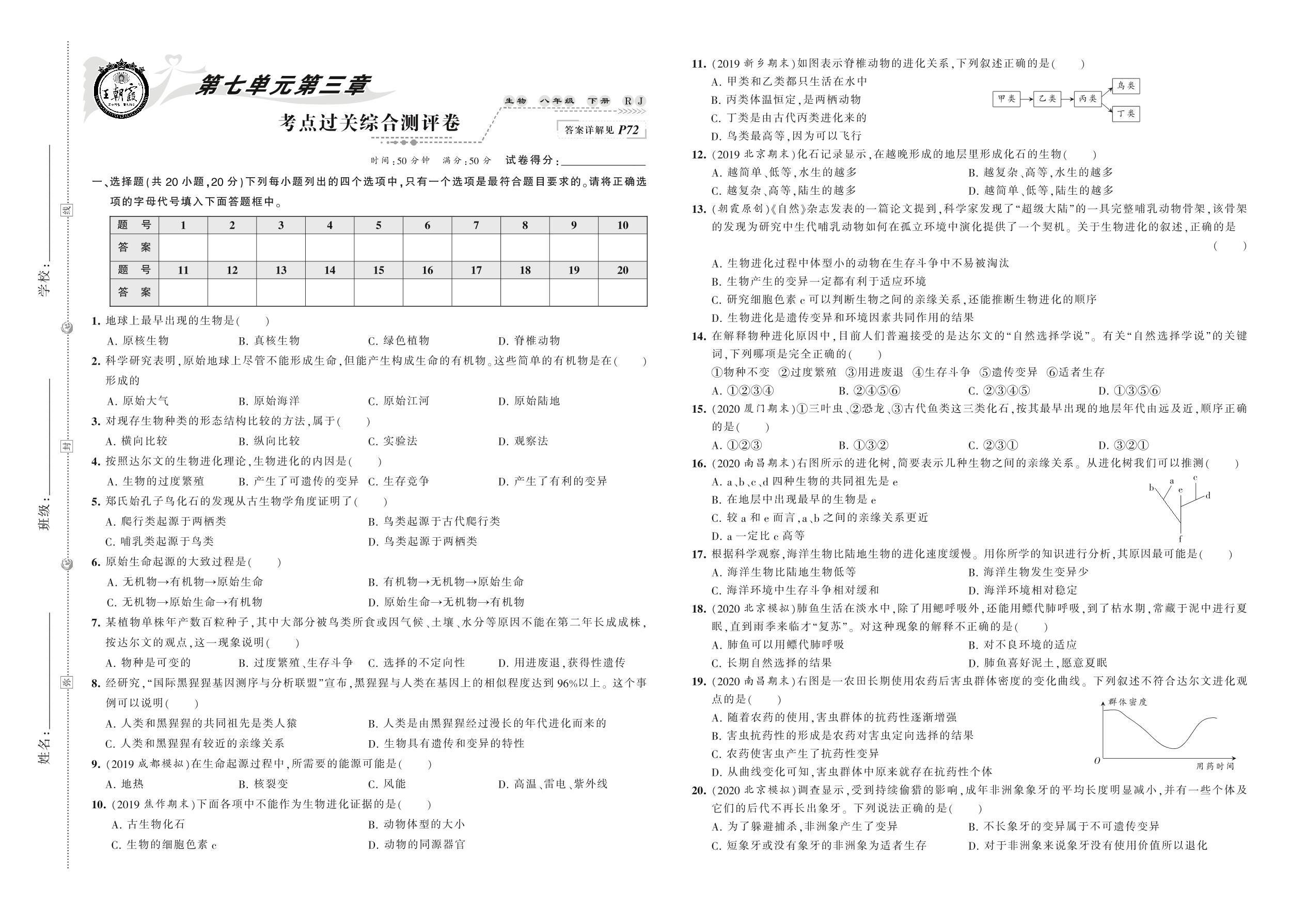 八年级生物人教版下册单元卷