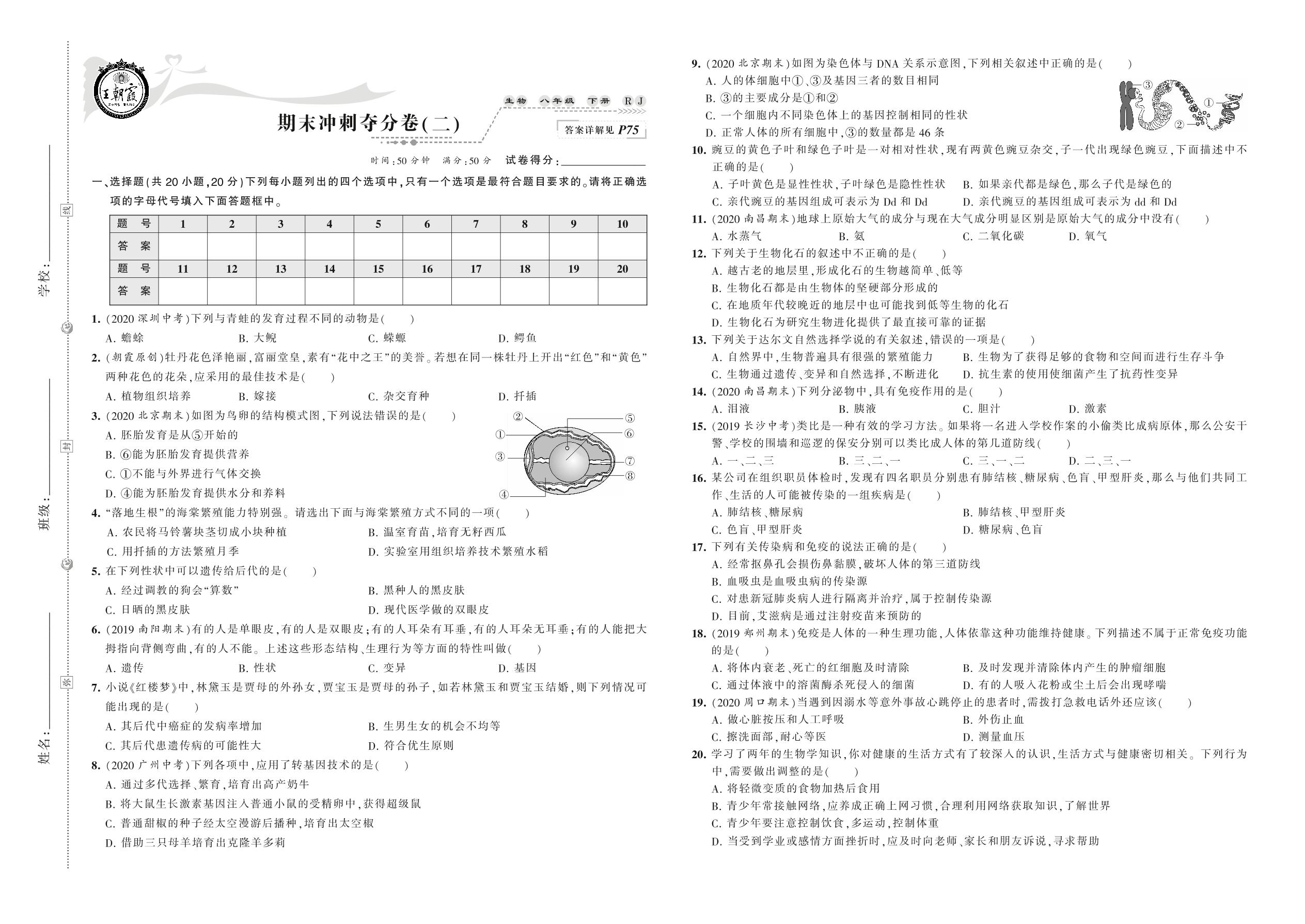 2021下册八年级生物人教版 期末冲刺夺分卷(二)
