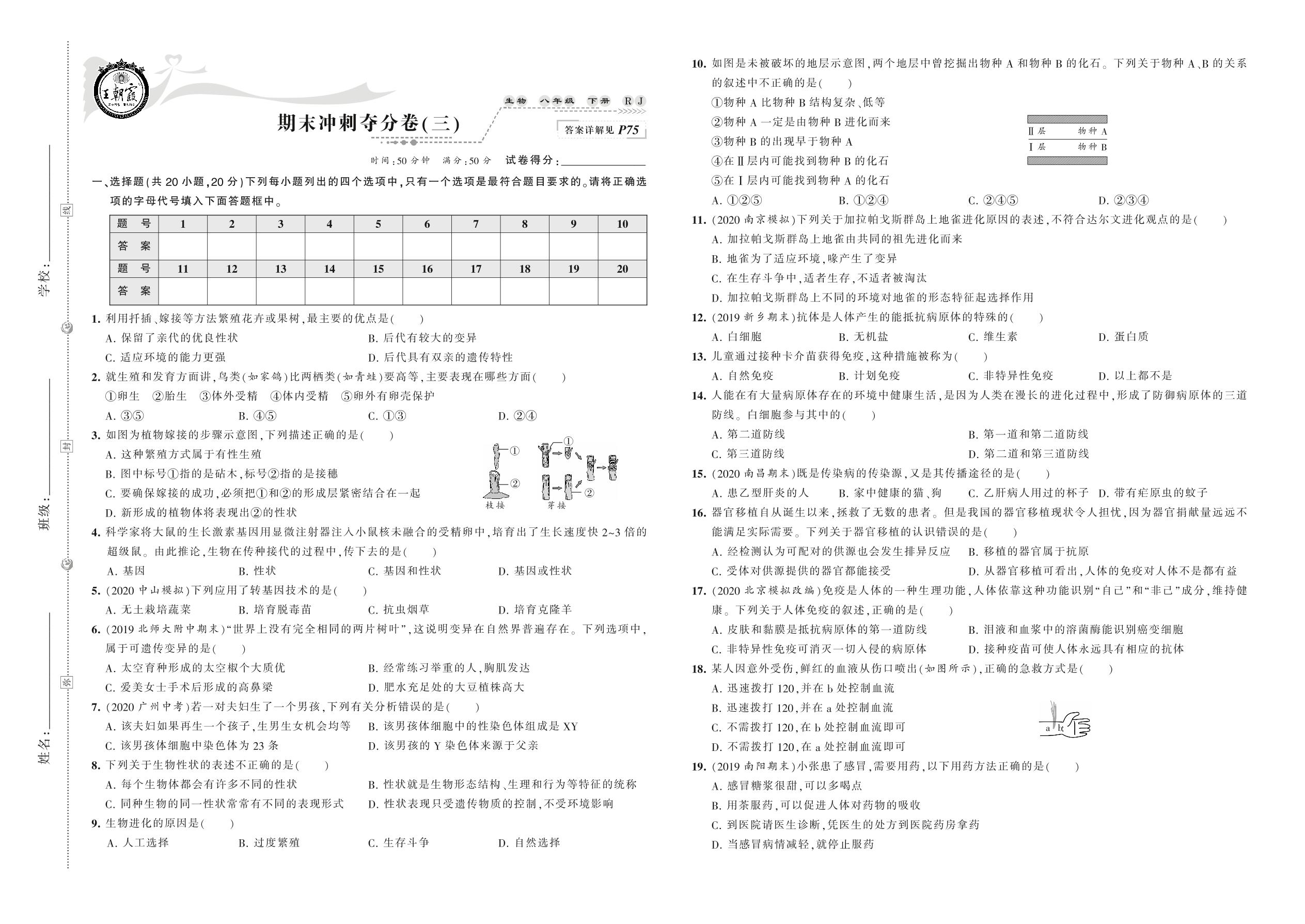 2021下册八年级生物人教版 期末冲刺夺分卷(三)