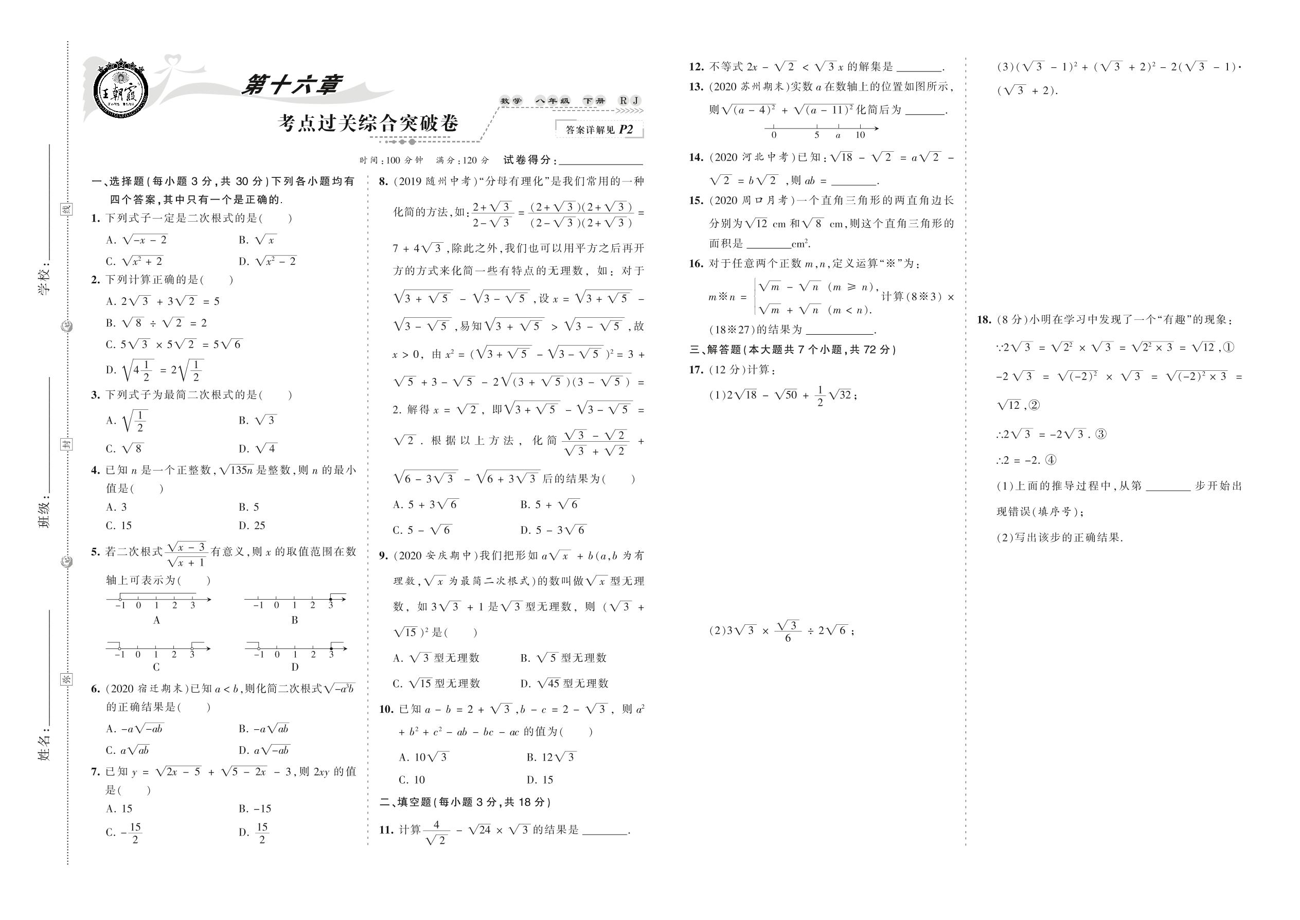 2021下册八年级数学人教版 第十六章 考点过关综合突破卷