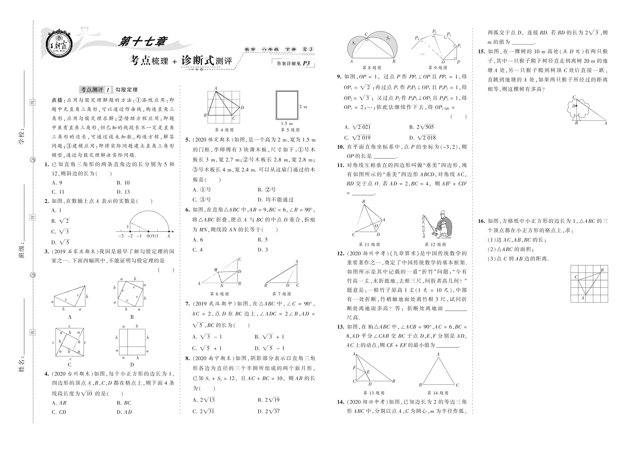 2021下册八年级数学人教版 第十七章 考点梳理 + 诊断式测评