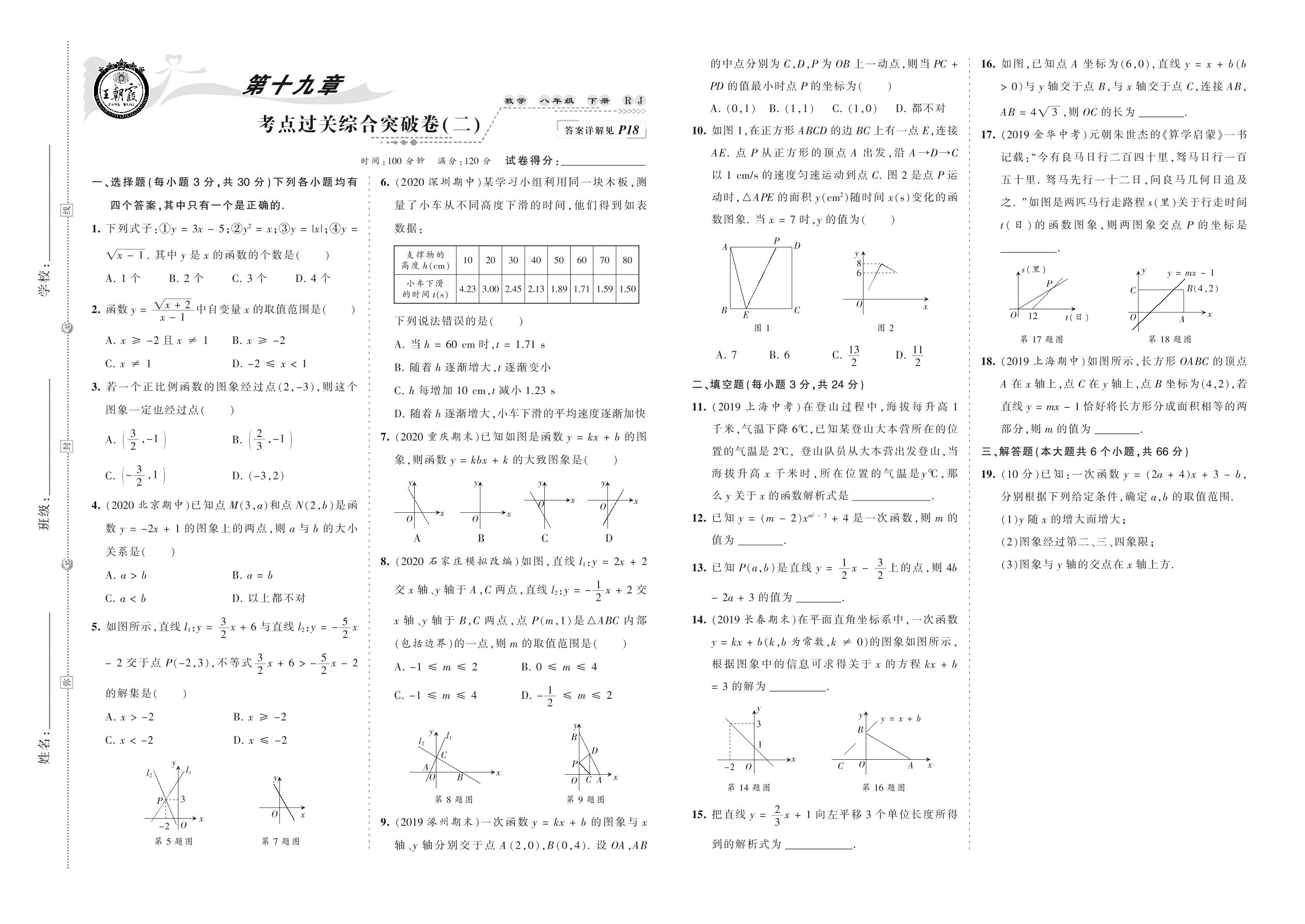 2021下册八年级数学人教版 第十九章 考点过关综合突破卷(二)