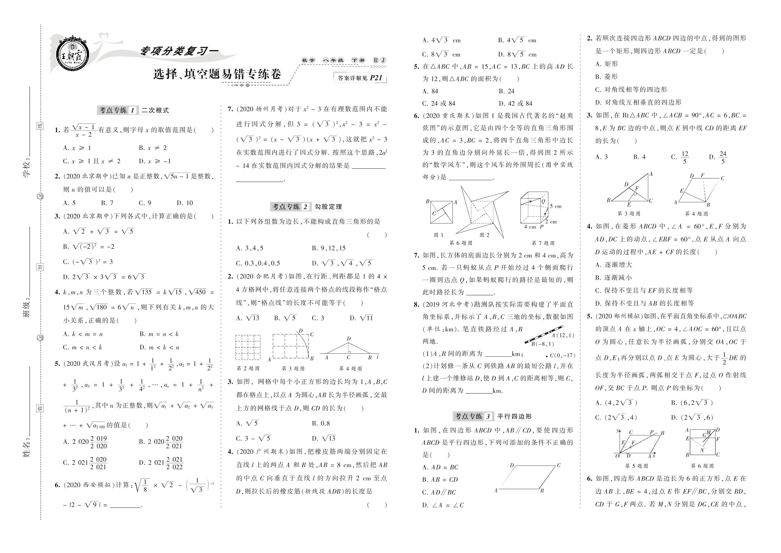 2021下册八年级数学人教版 选择、填空题易错专练卷