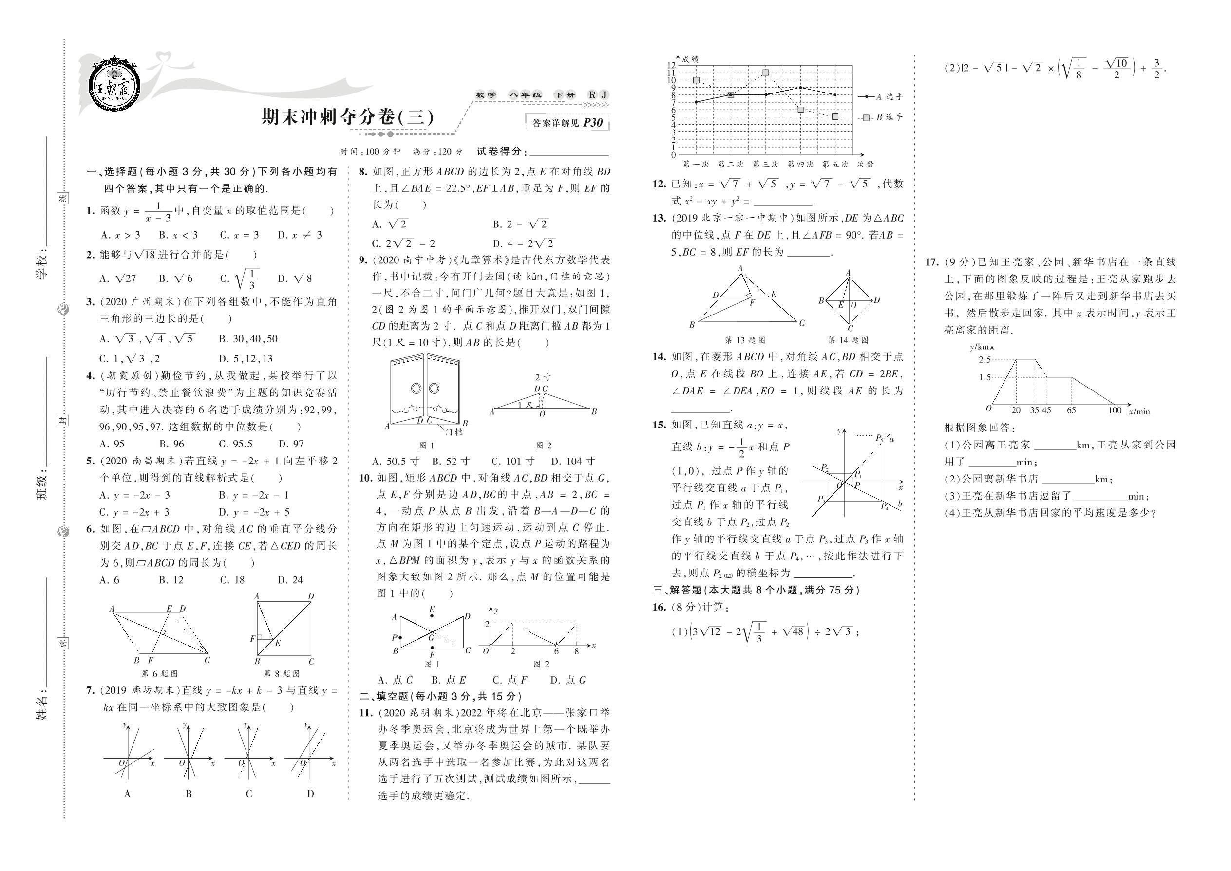 2021下册八年级数学人教版 期末冲刺夺分卷(三)