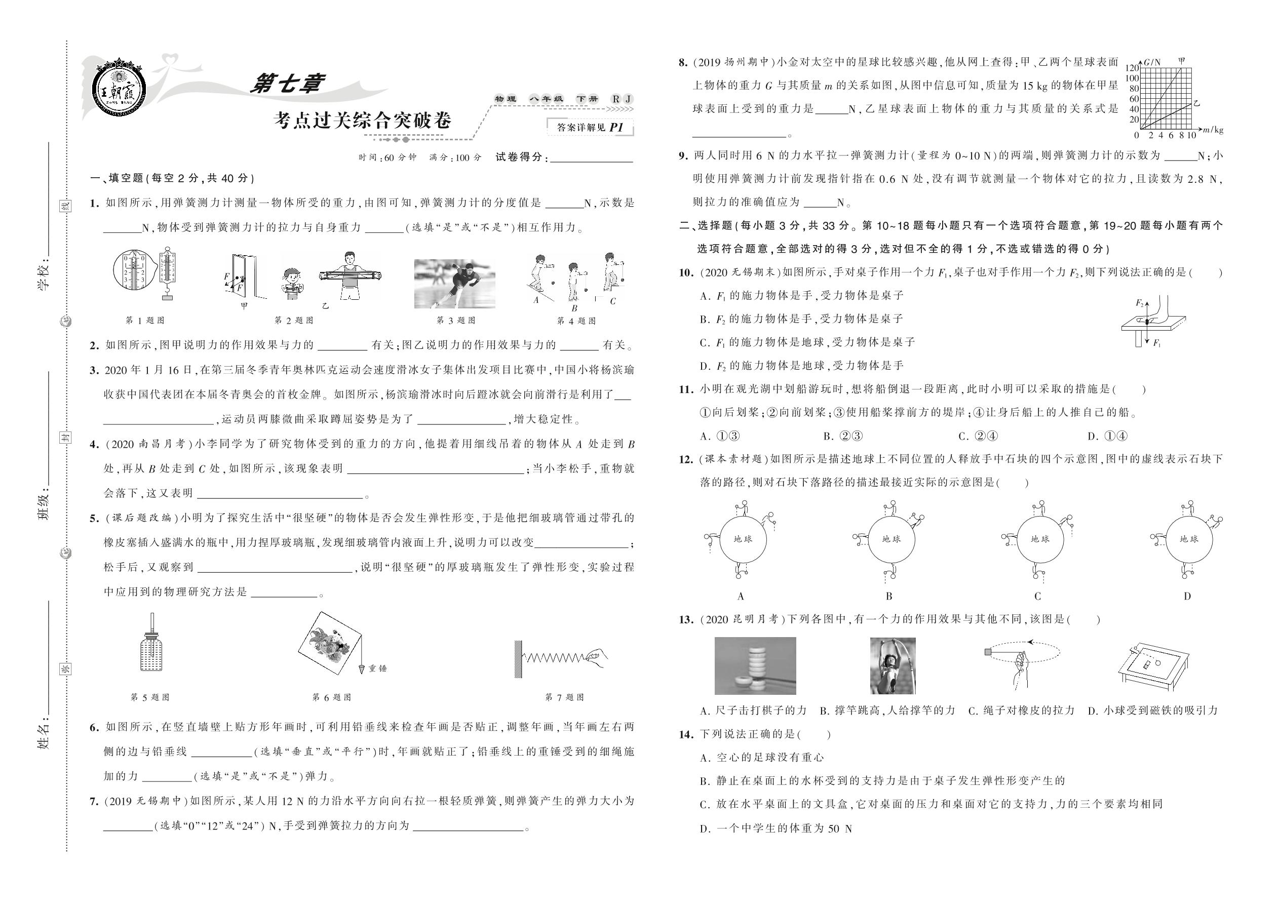 2021下册八年级物理人教版 第七章 考点过关综合突破卷