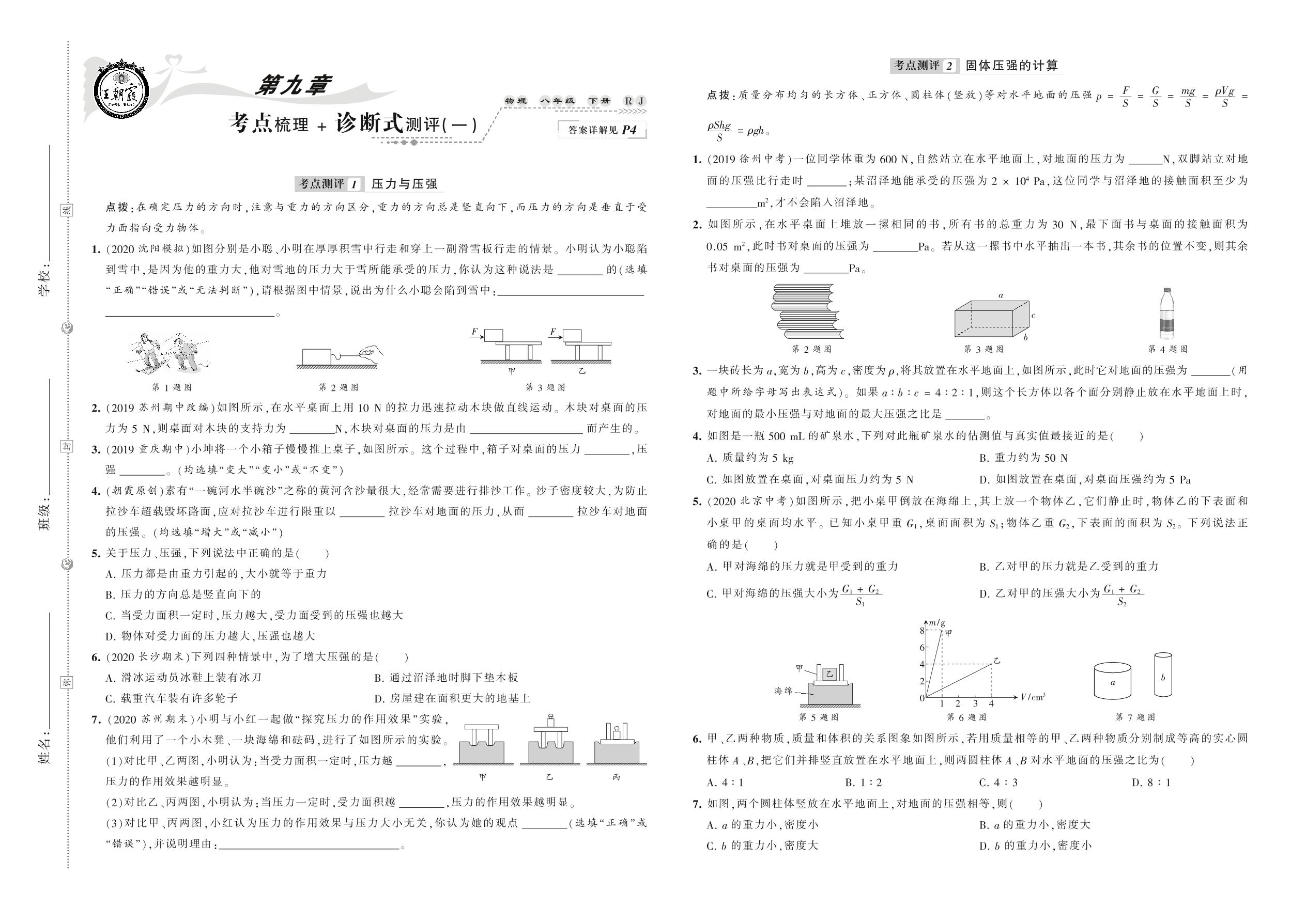 2021下册八年级物理人教版 第九章 考点梳理 + 诊断式测评(一)