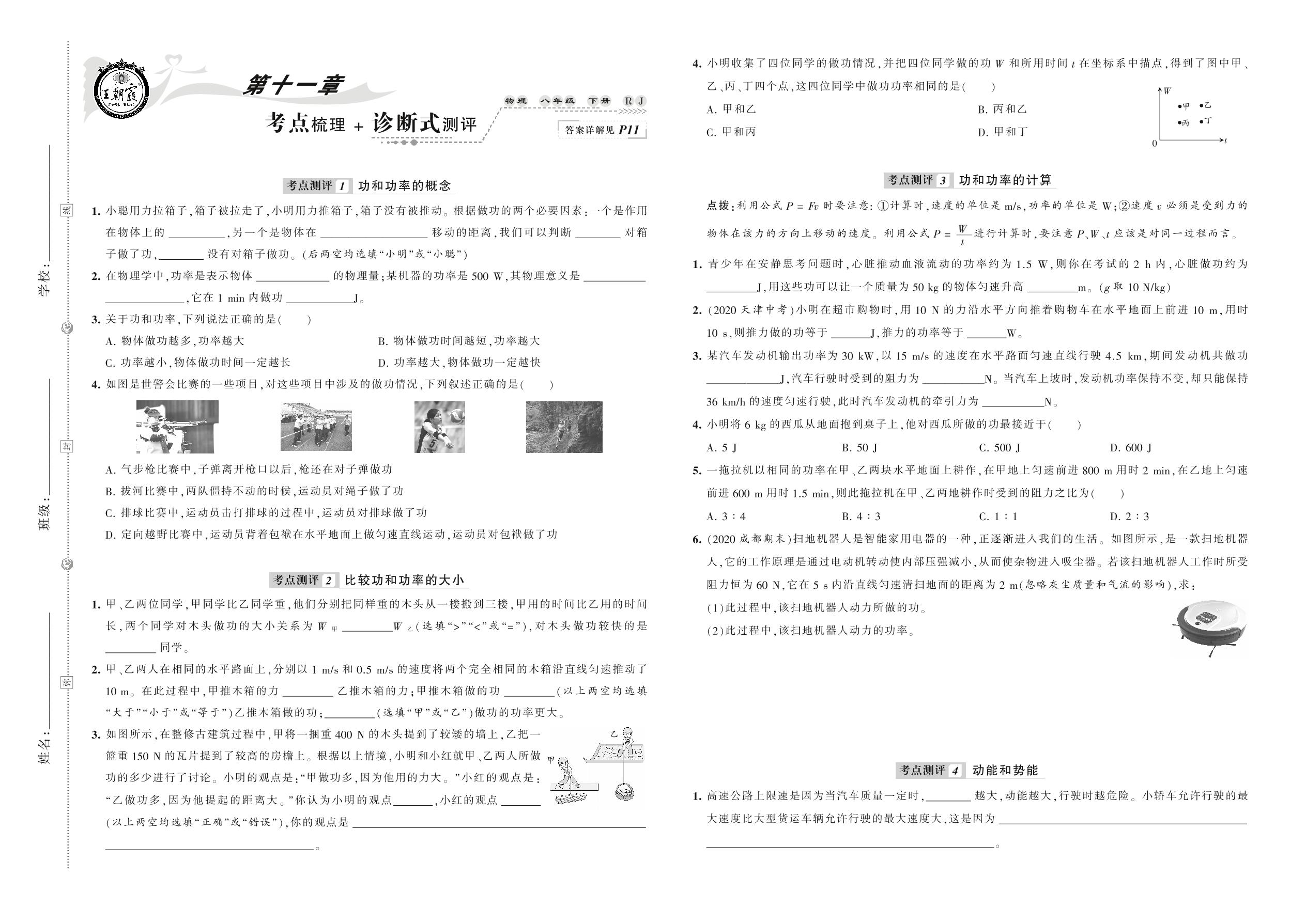 2021下册八年级物理人教版 第十一章 考点梳理 + 诊断式测评