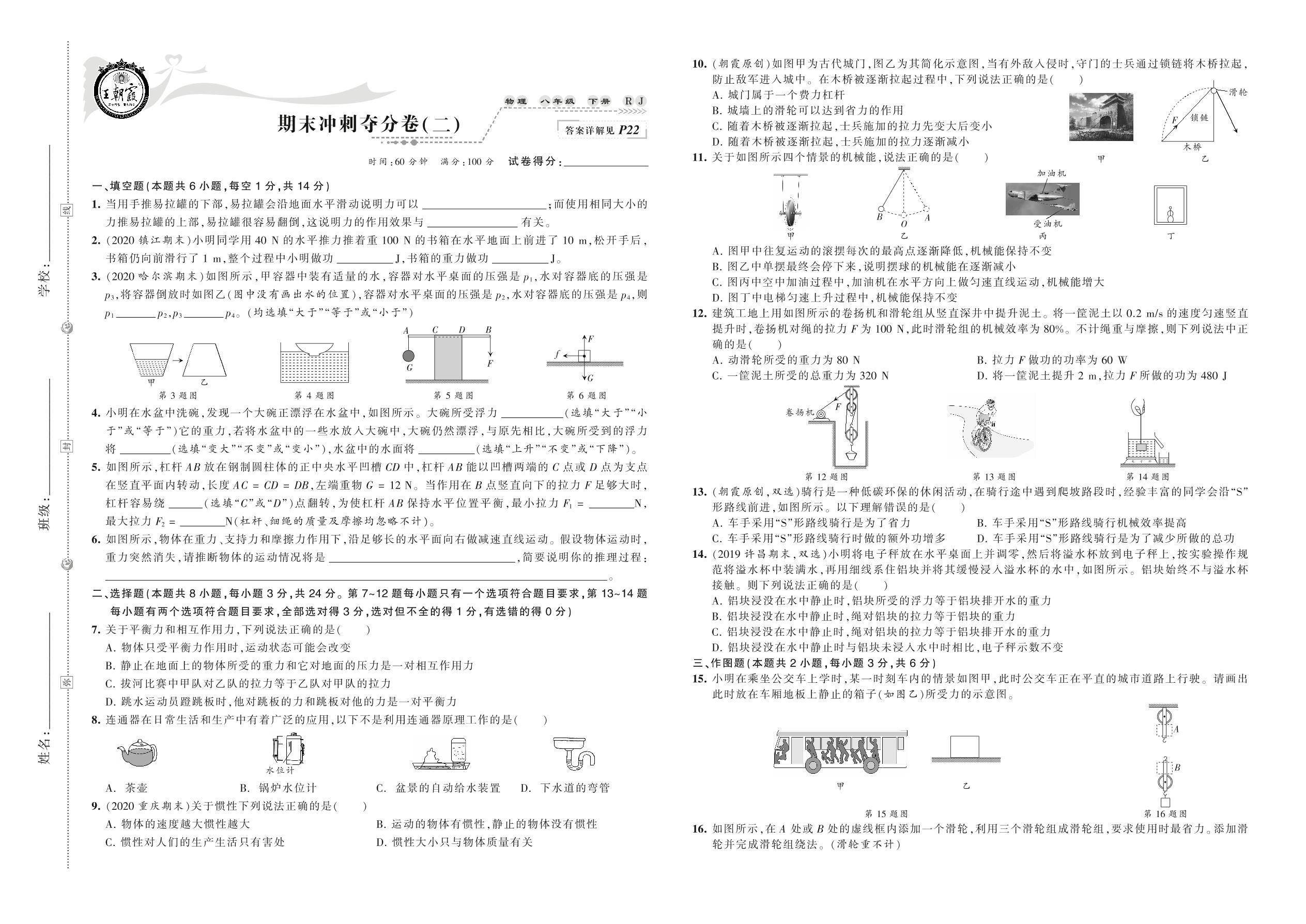 2021下册八年级物理人教版 期末冲刺夺分卷(二)