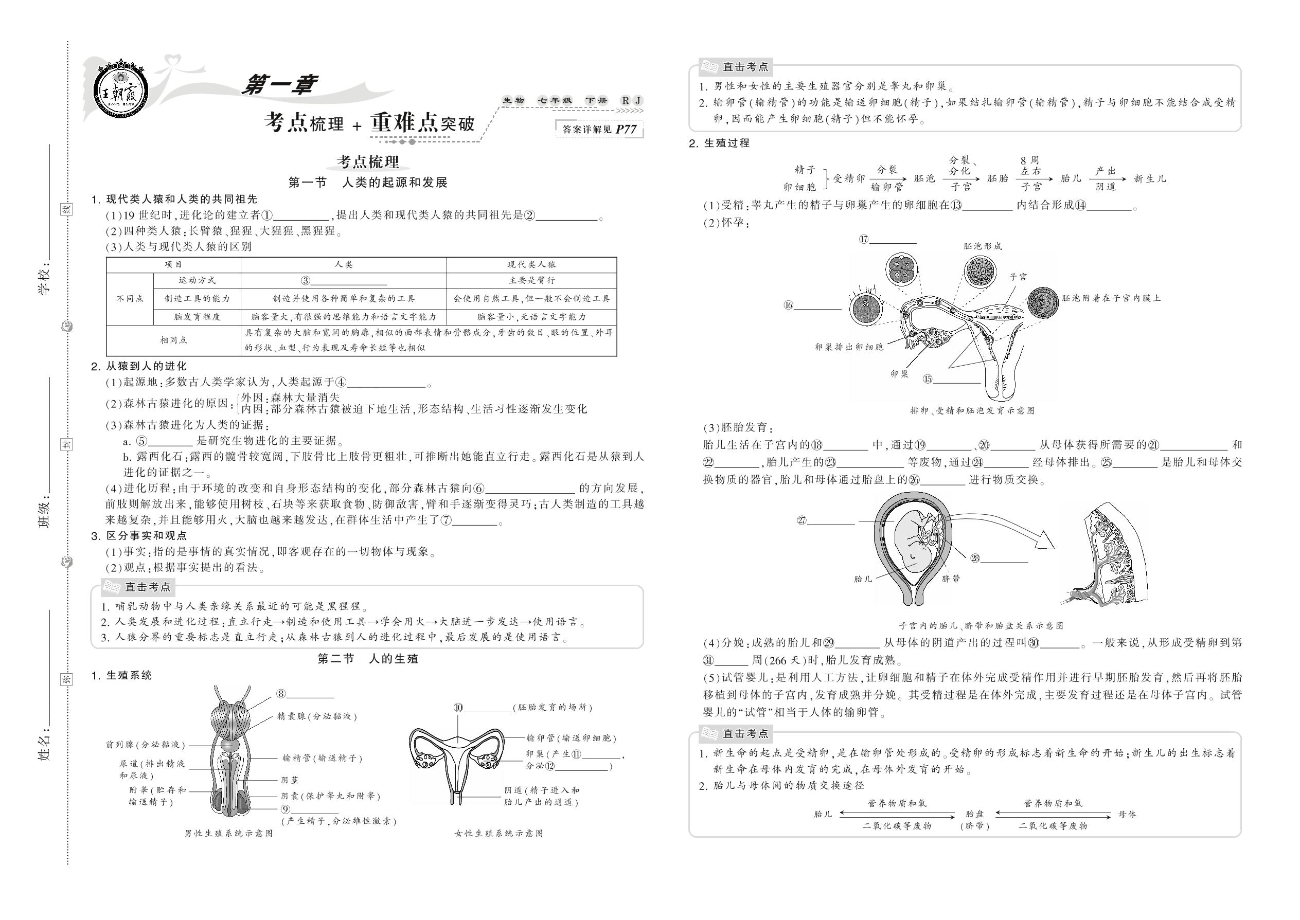 2021下册七年级生物人教版 第一章 考点梳理 + 重难点突破