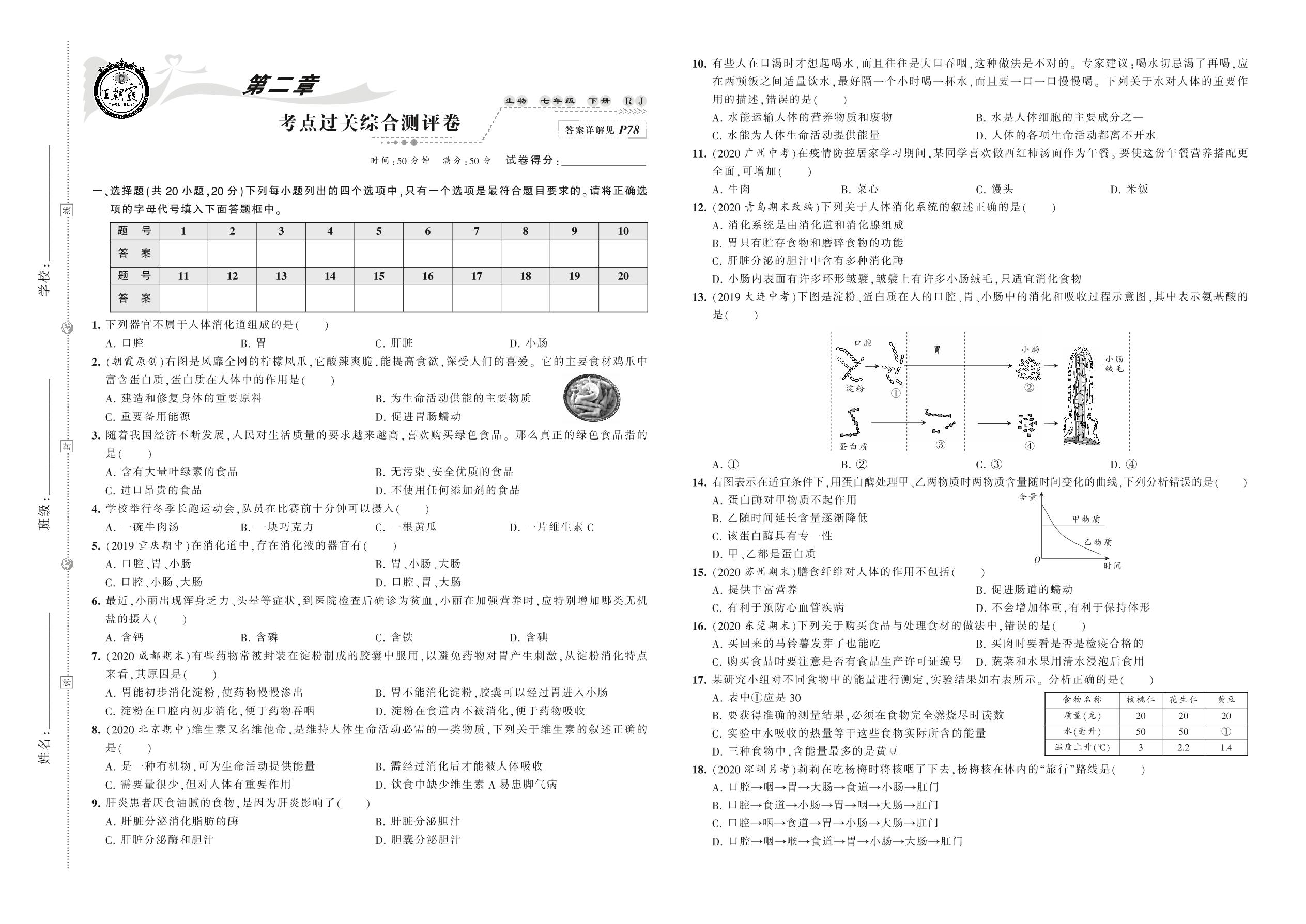 2021下册七年级生物人教版 第二章 考点过关综合测评卷