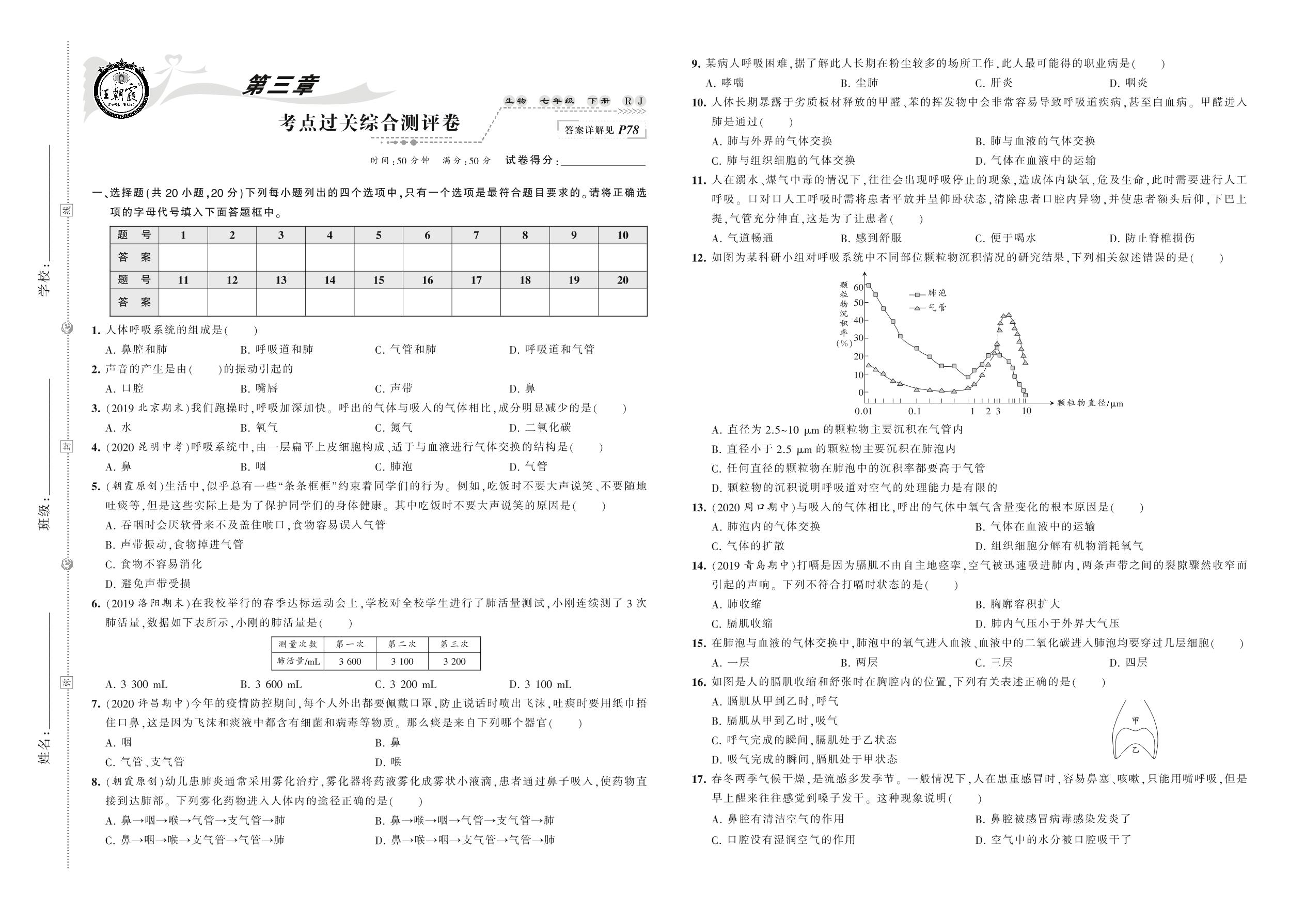 2021下册七年级生物人教版 第三章 考点过关综合测评卷
