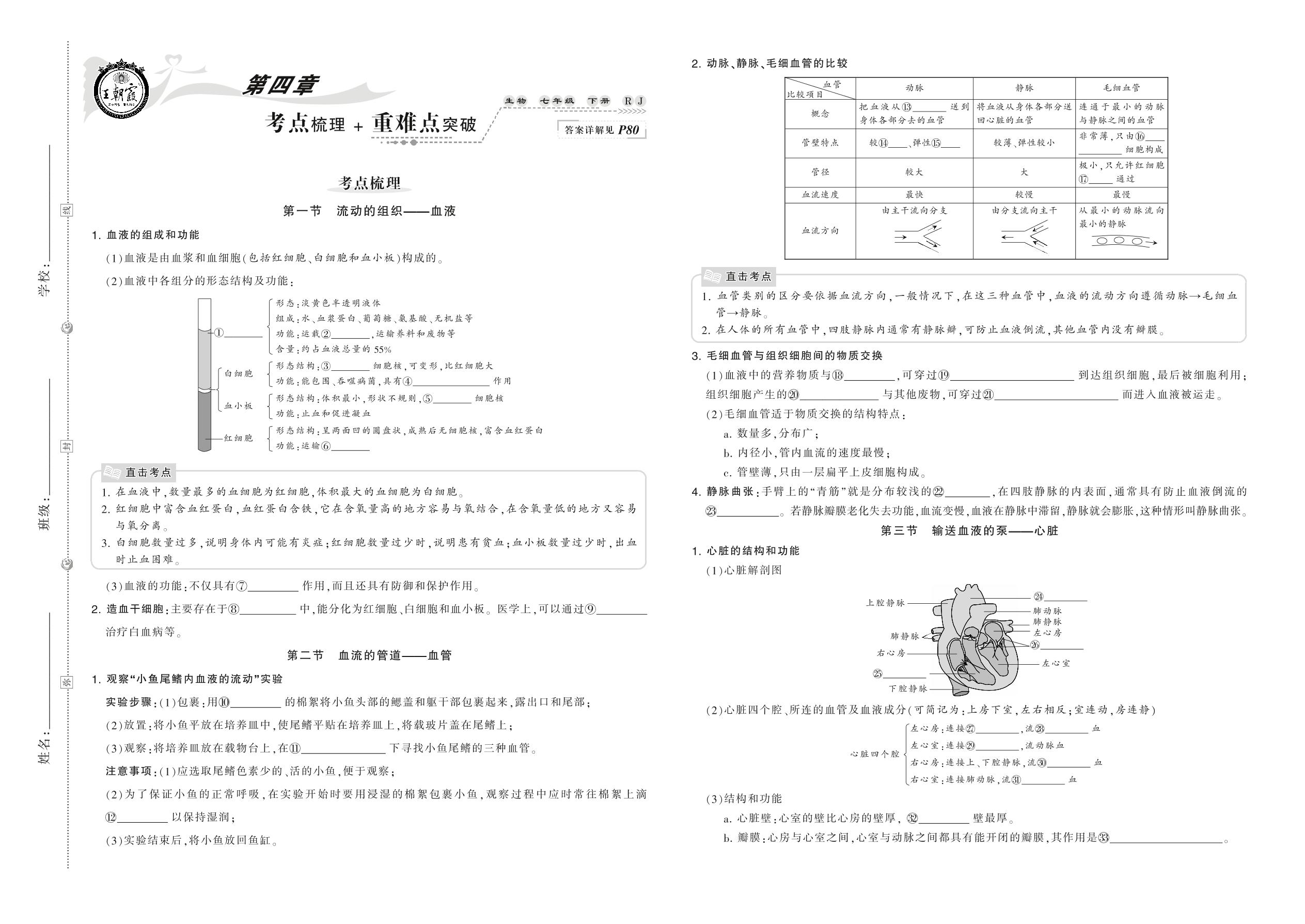 2021下册七年级生物人教版 第四章 考点梳理 + 重难点突破