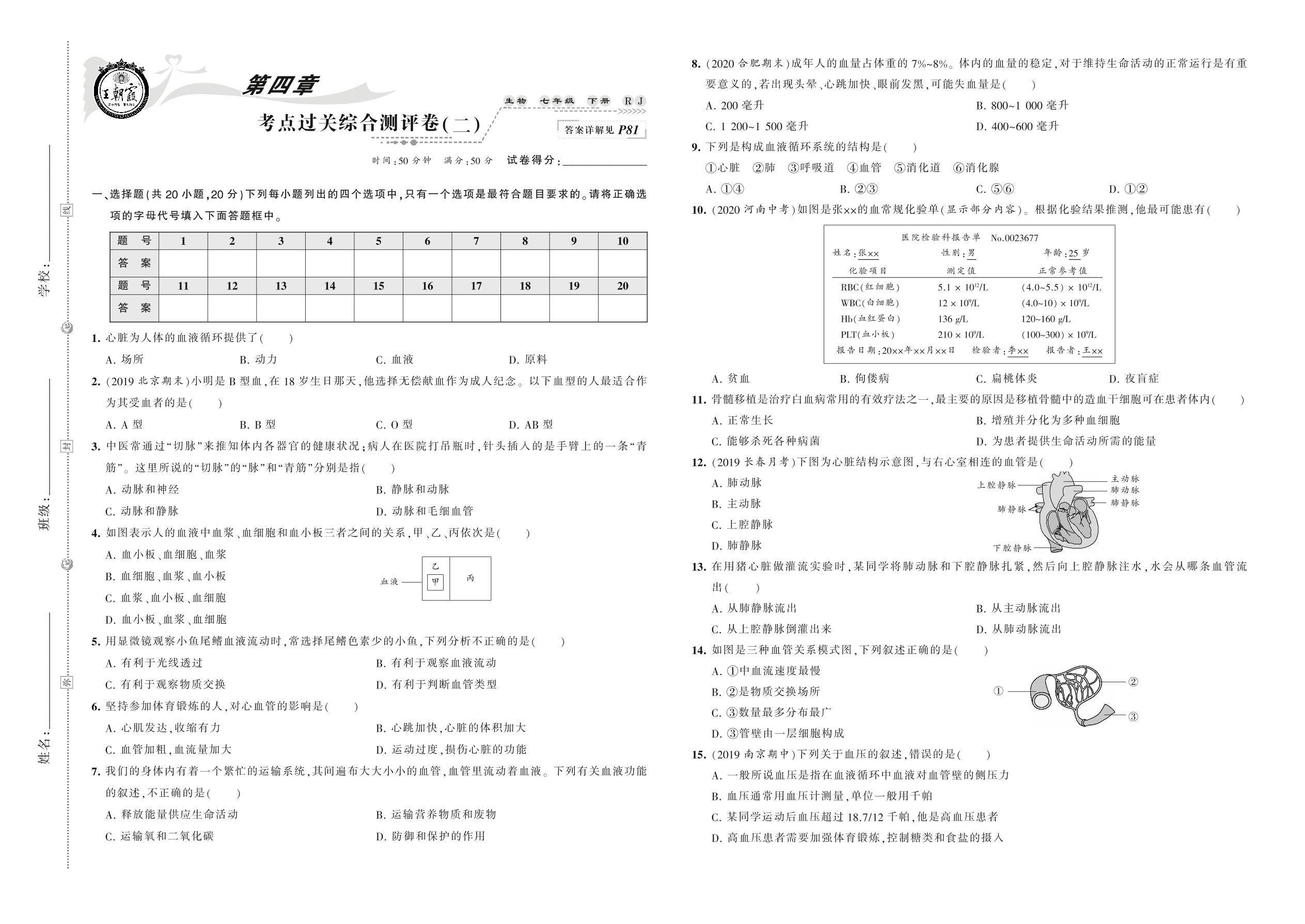 2021下册七年级生物人教版 第四章 考点过关综合测评卷(二)