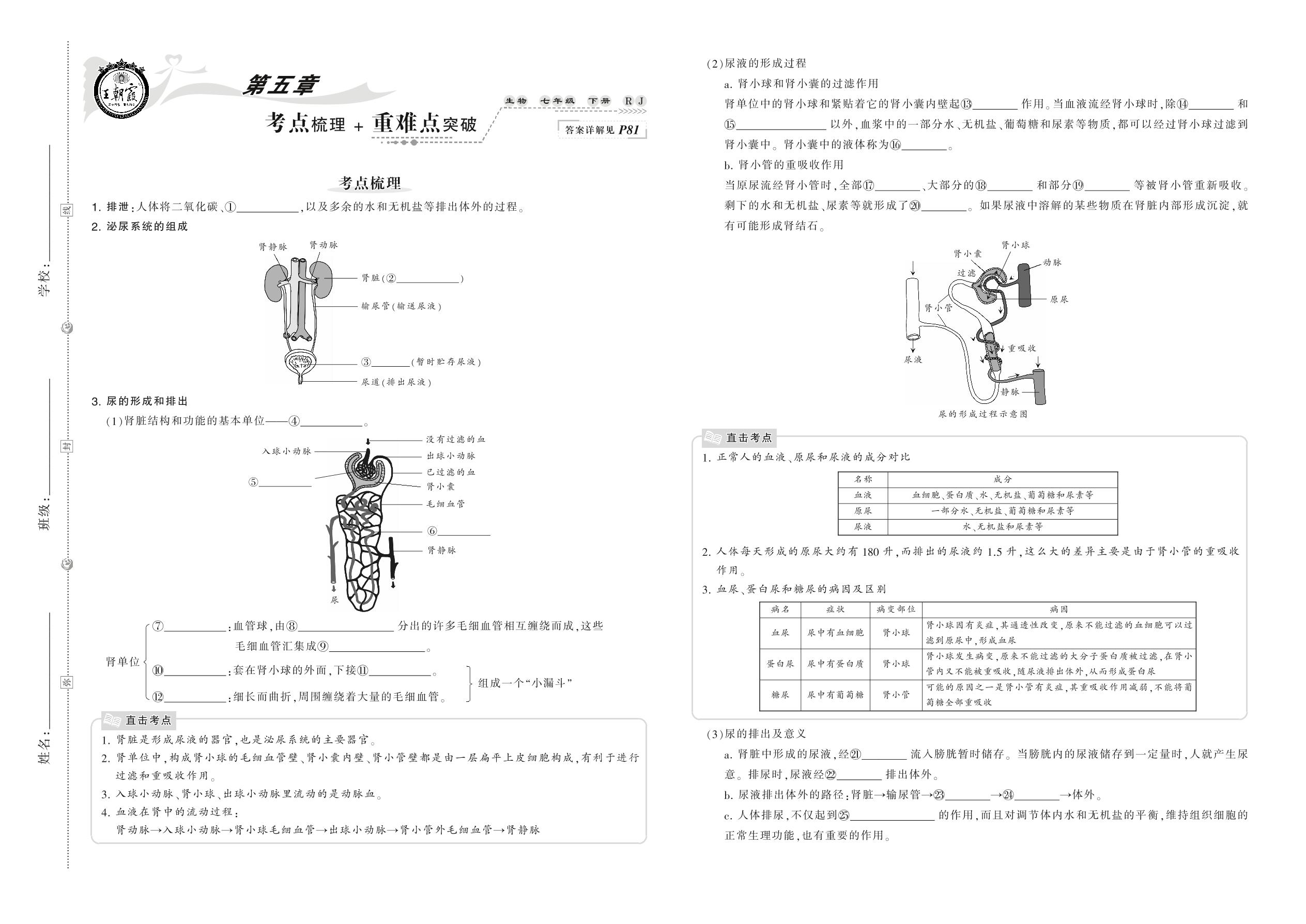 2021下册七年级生物人教版 第五章 考点梳理 + 重难点突破