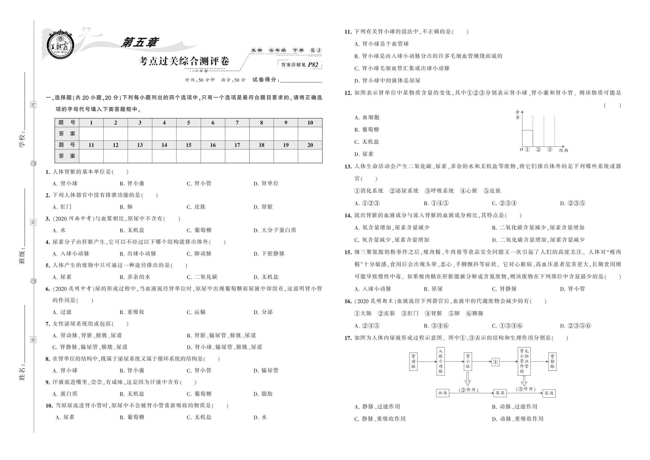 2021下册七年级生物人教版 第五章 考点过关综合测评卷