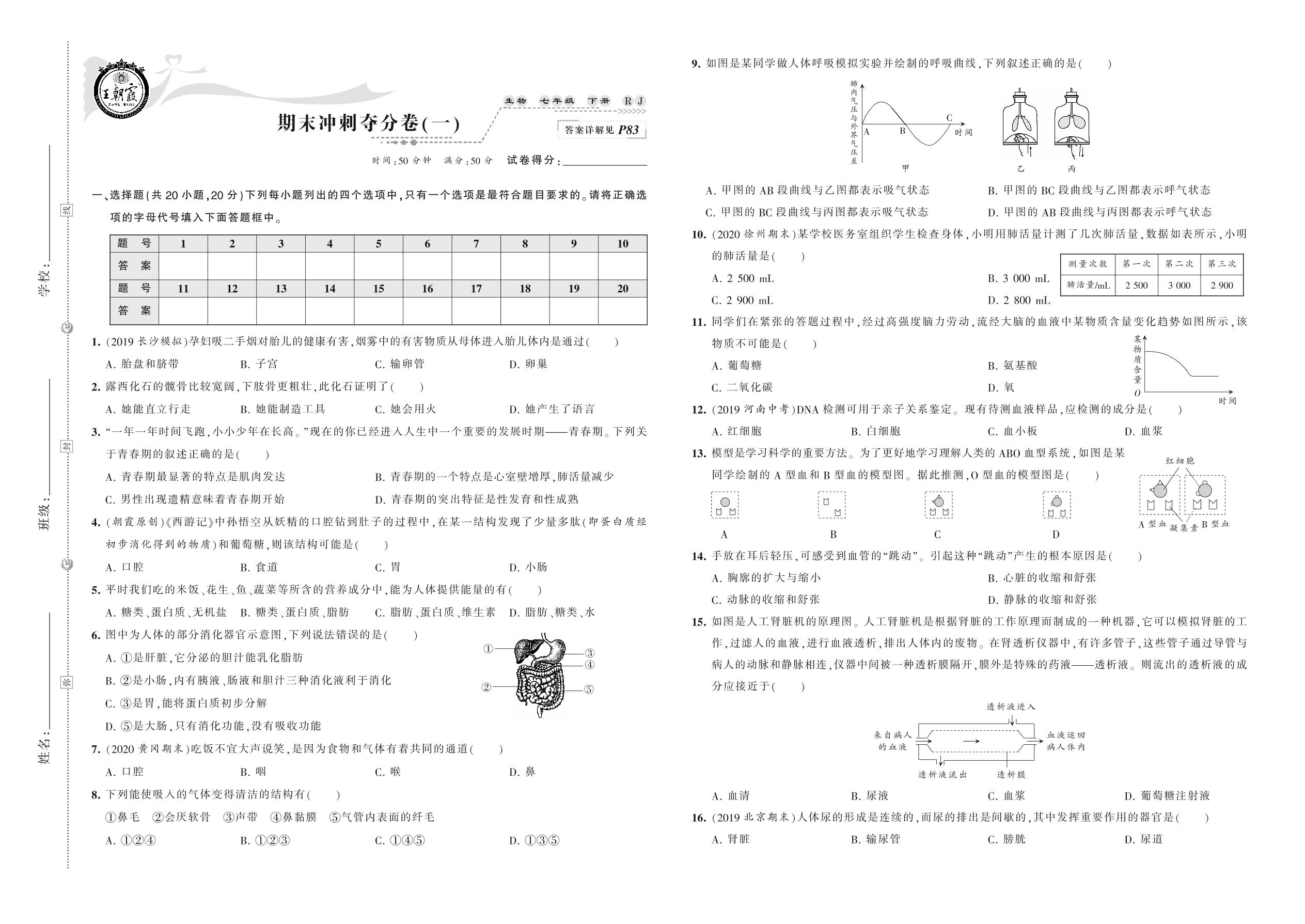 2021下册七年级生物人教版 期末冲刺夺分卷(一)