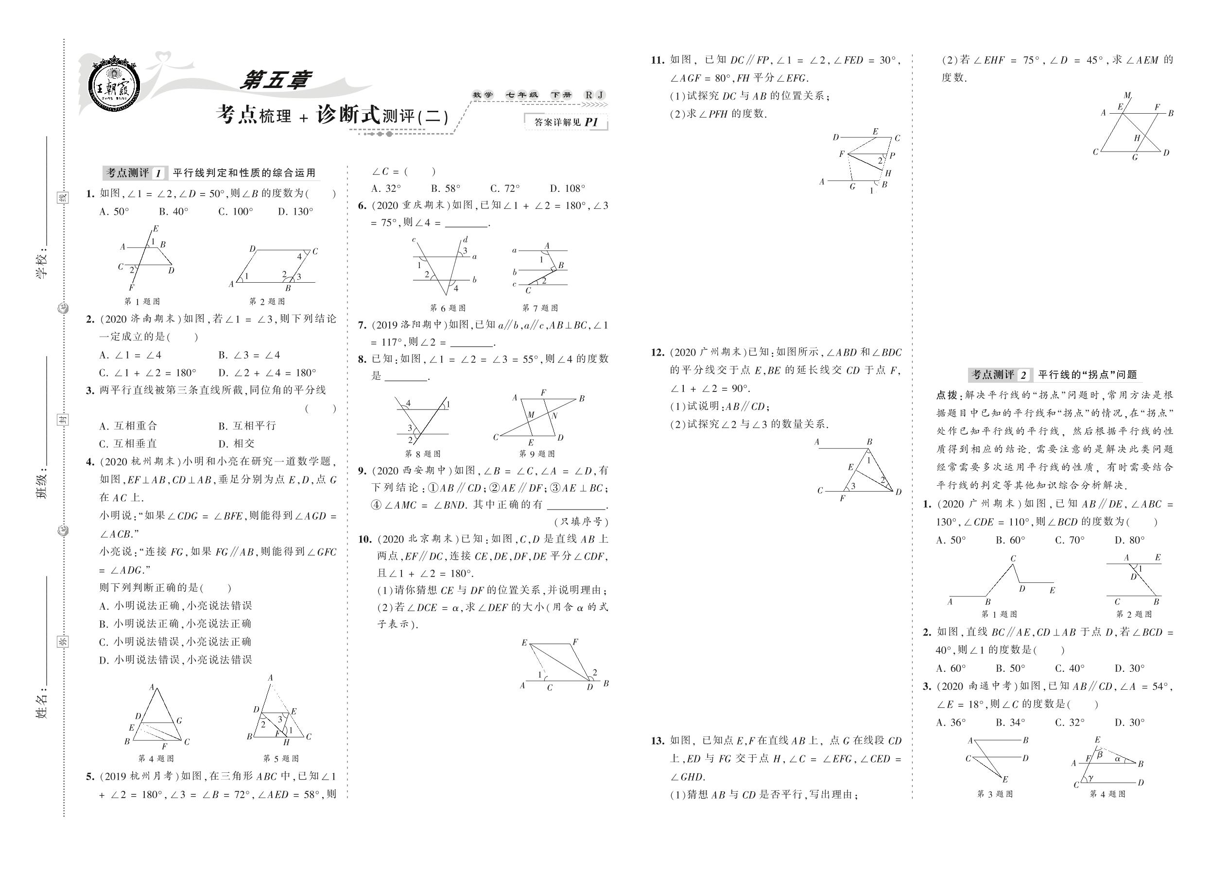 2021下册七年级数学人教版 第五章 考点梳理 + 诊断式测评(二)