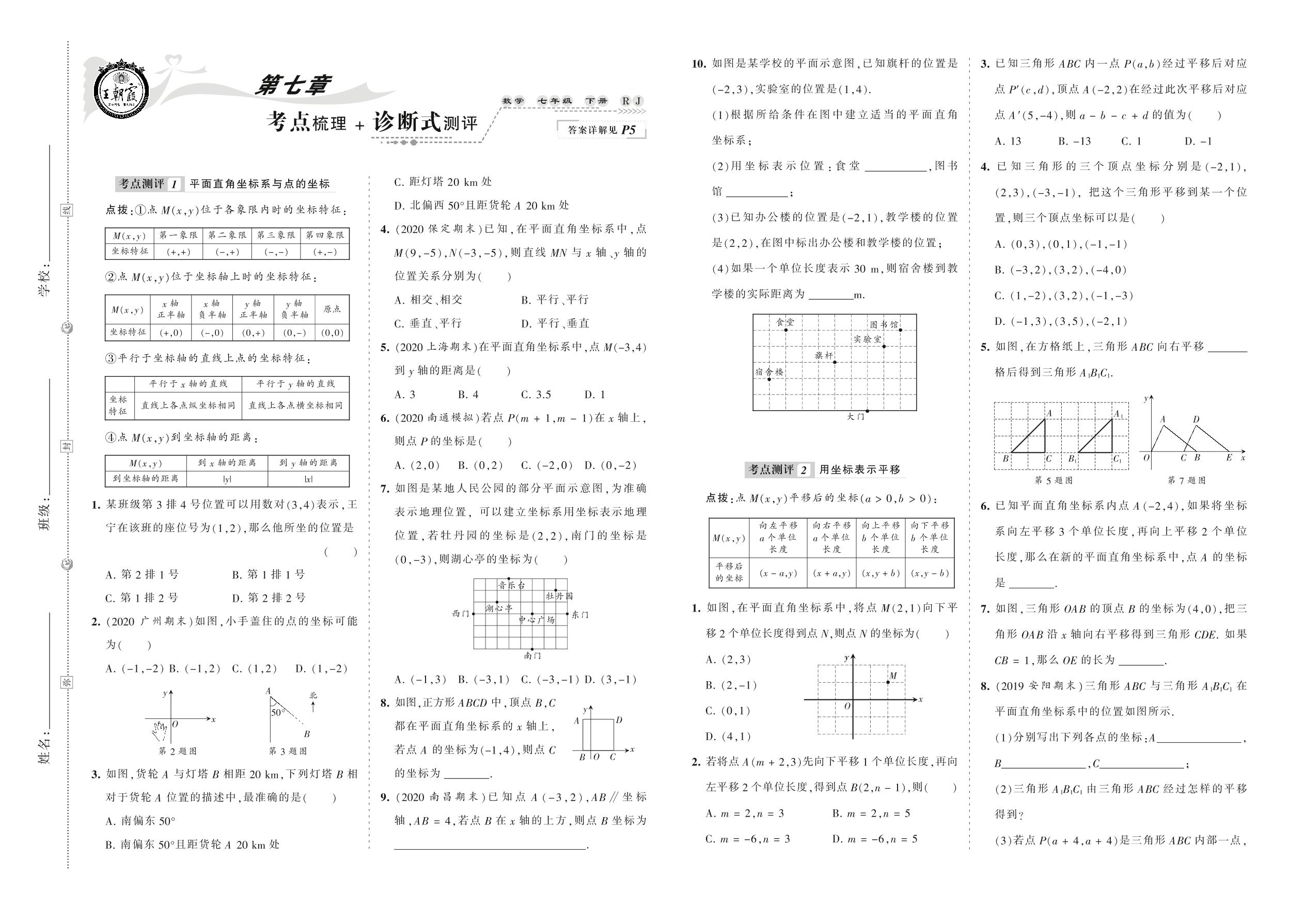 2021下册七年级数学人教版 第七章 考点梳理 + 诊断式测评