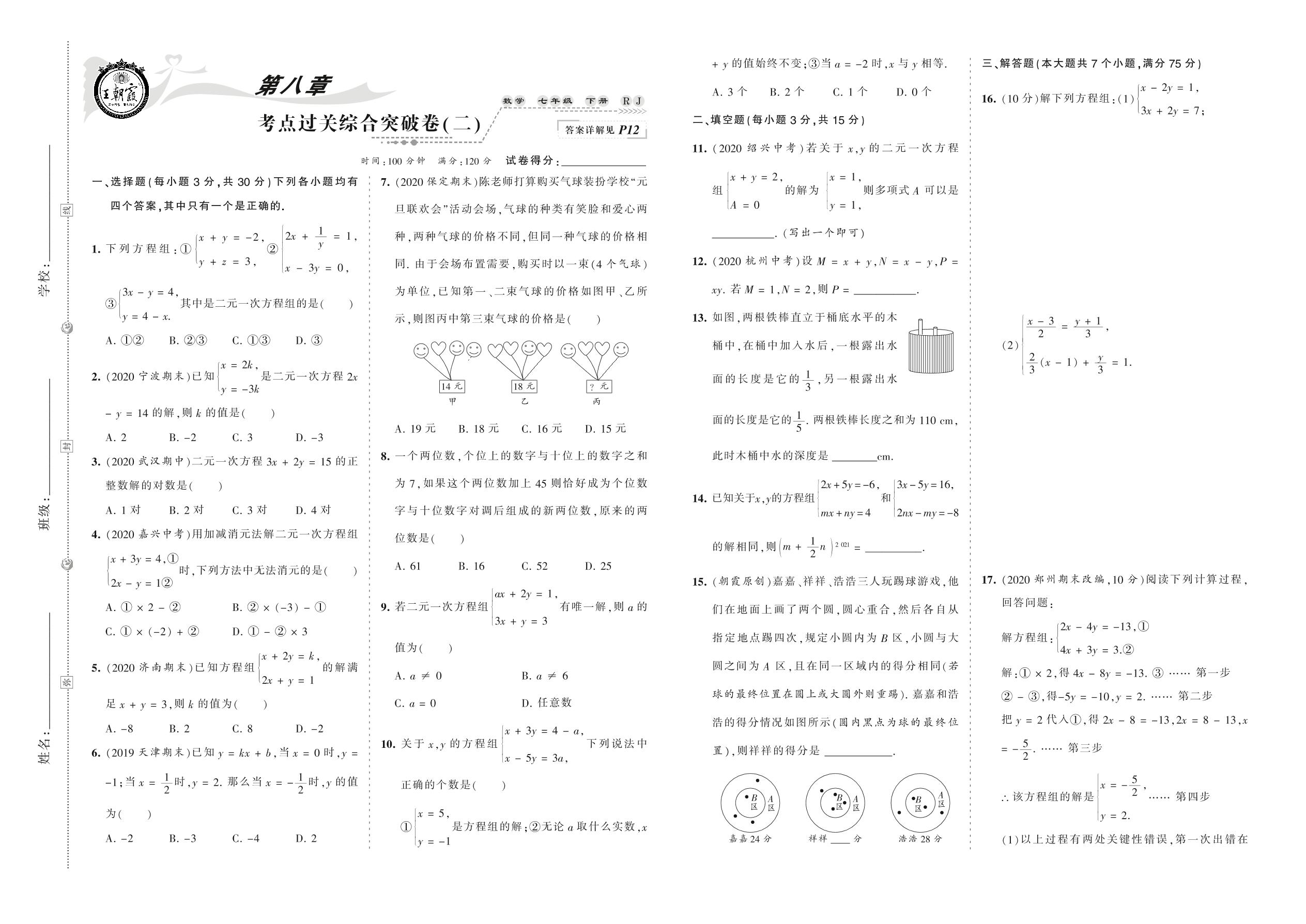 2021下册七年级数学人教版 第八章 考点过关综合突破卷(二)