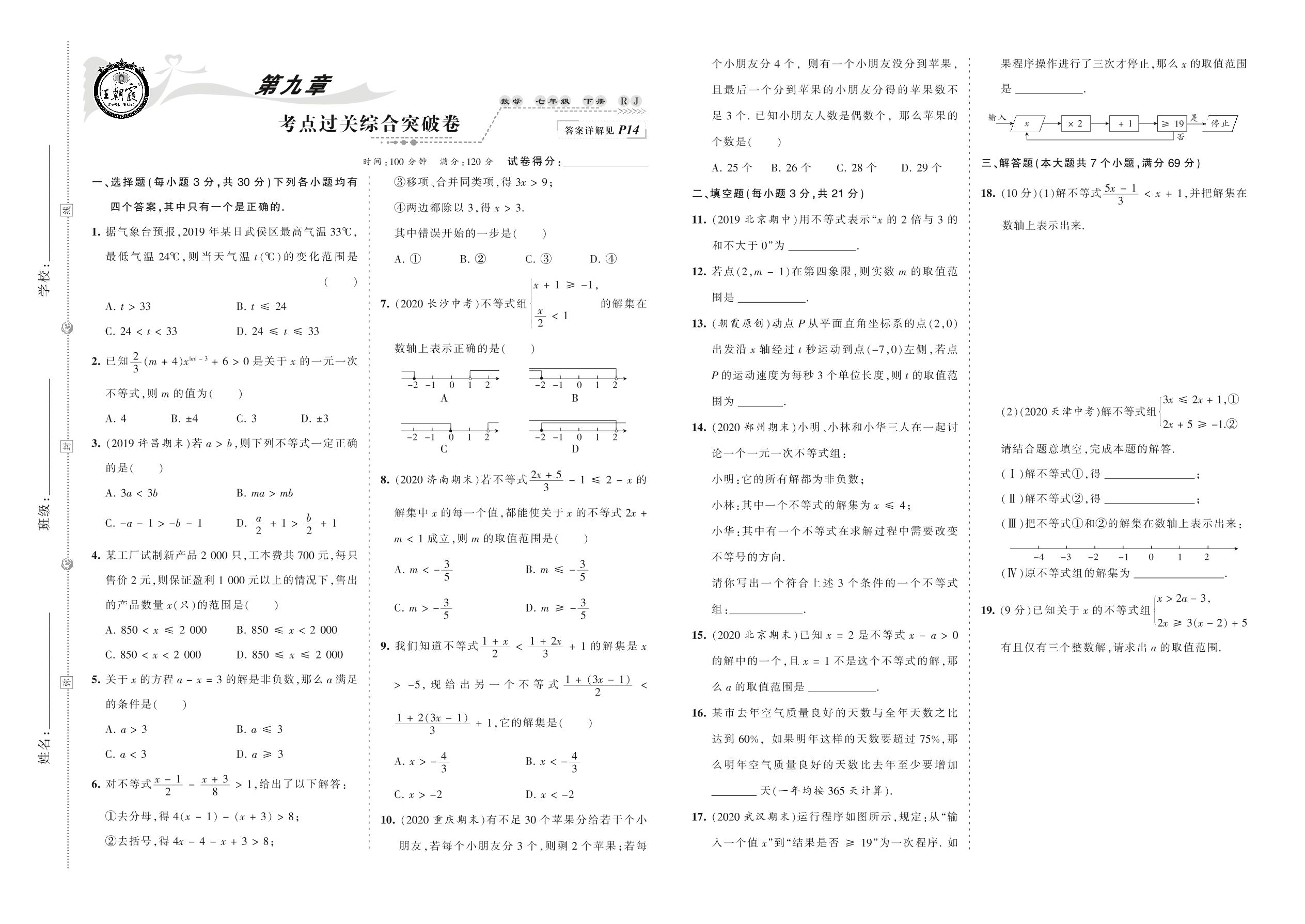 2021下册七年级数学人教版 第九章 考点过关综合突破卷