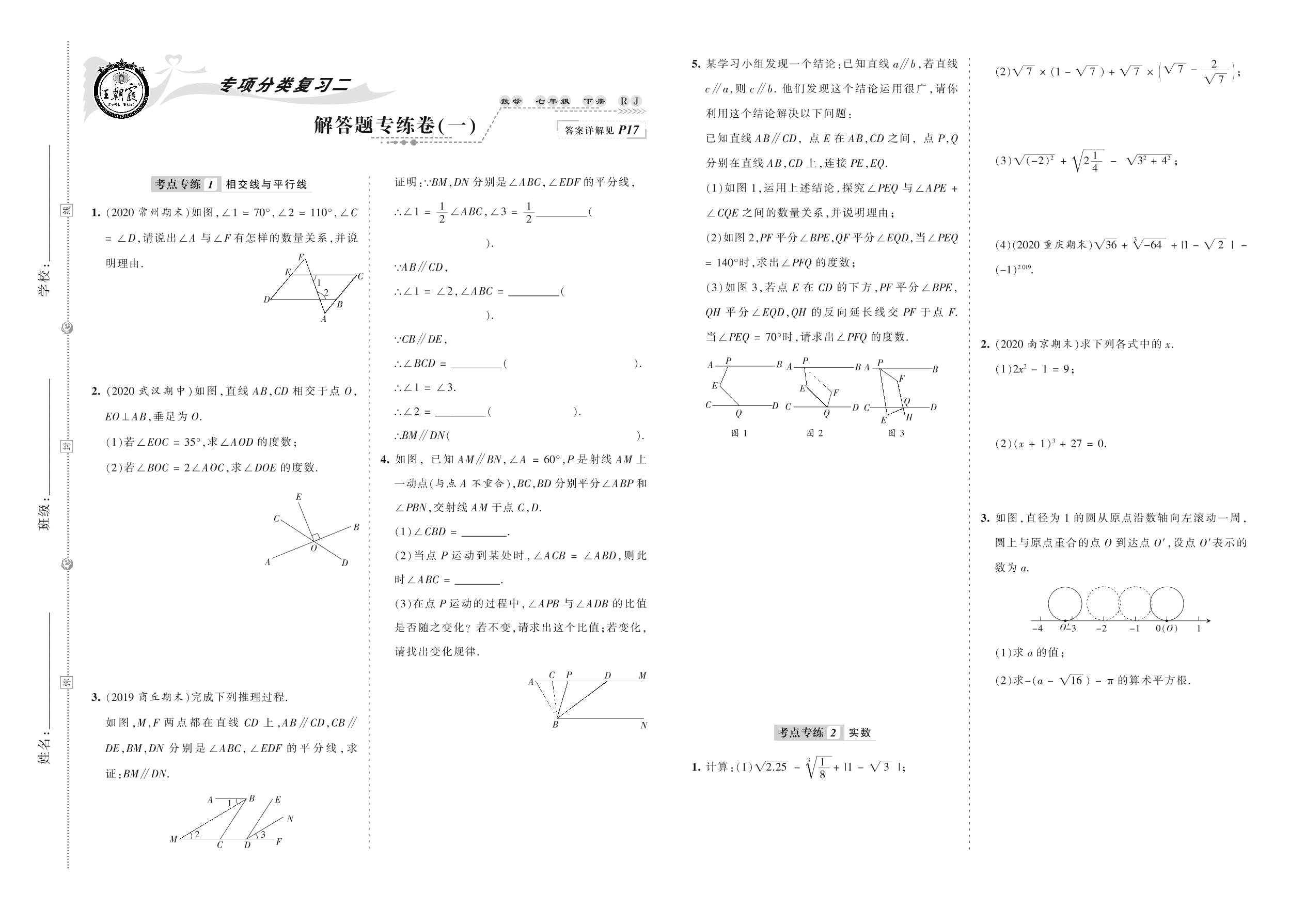 2021下册七年级数学人教版 解答题专练卷(一)